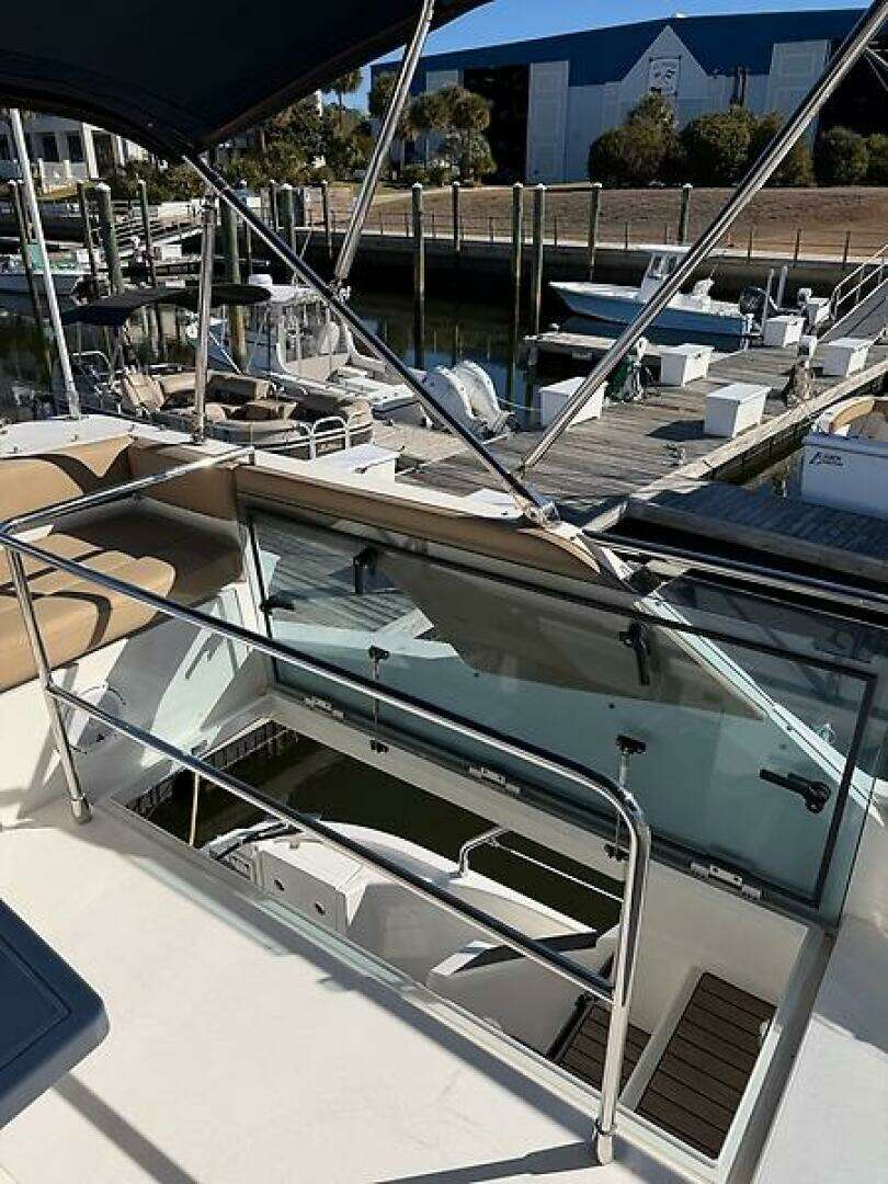 - Large hatch with flyscreen and concealed blinds to foredeck