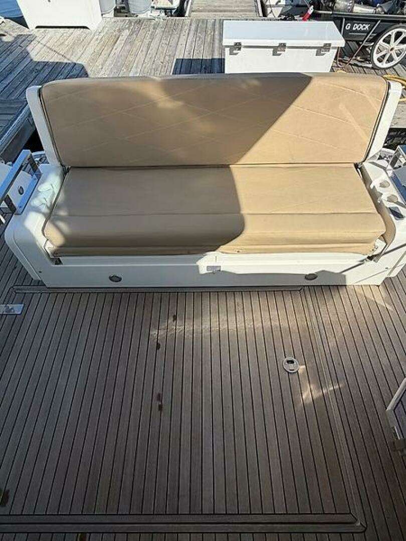 - Recessed self-draining area on foredeck for coachroof sun cushions