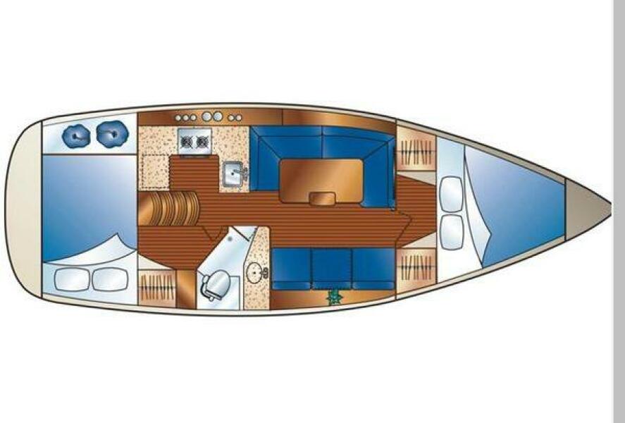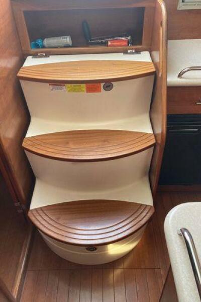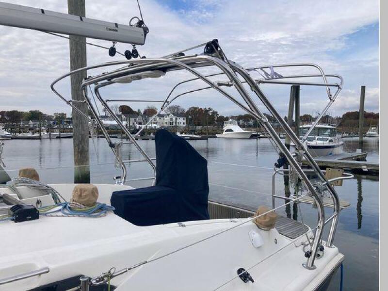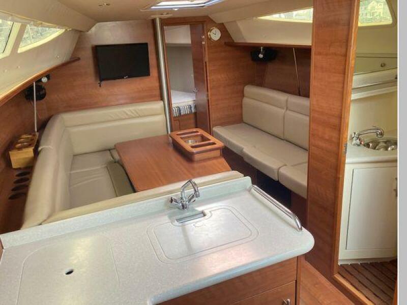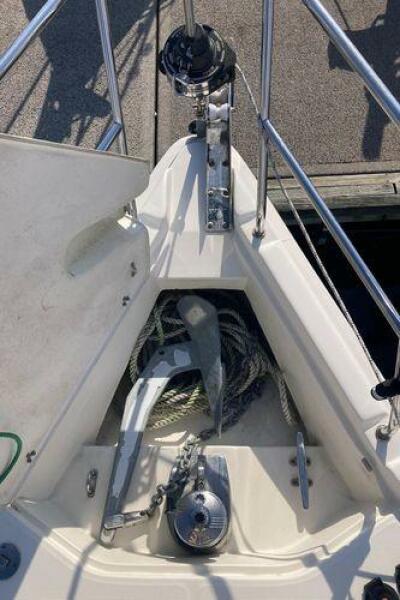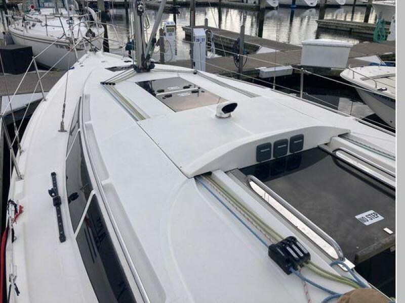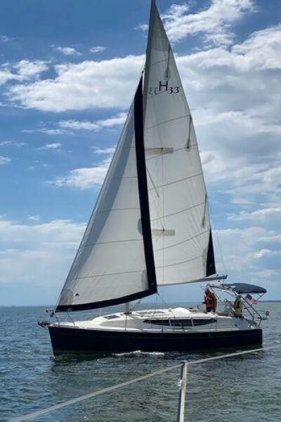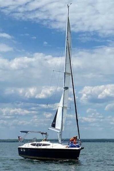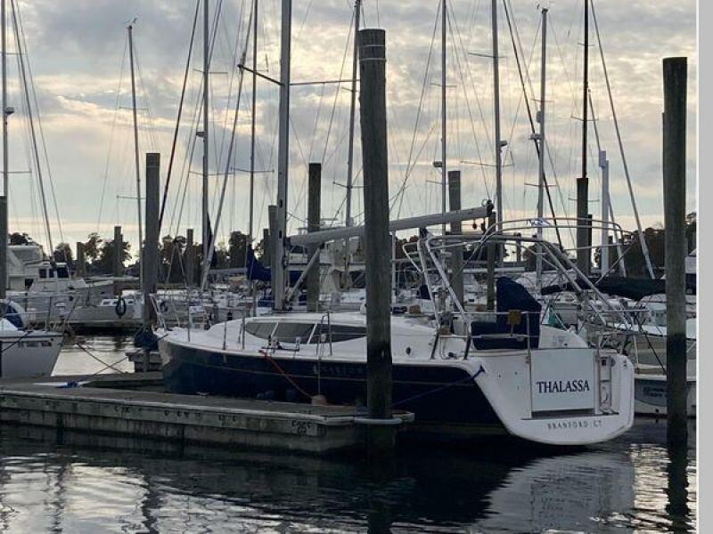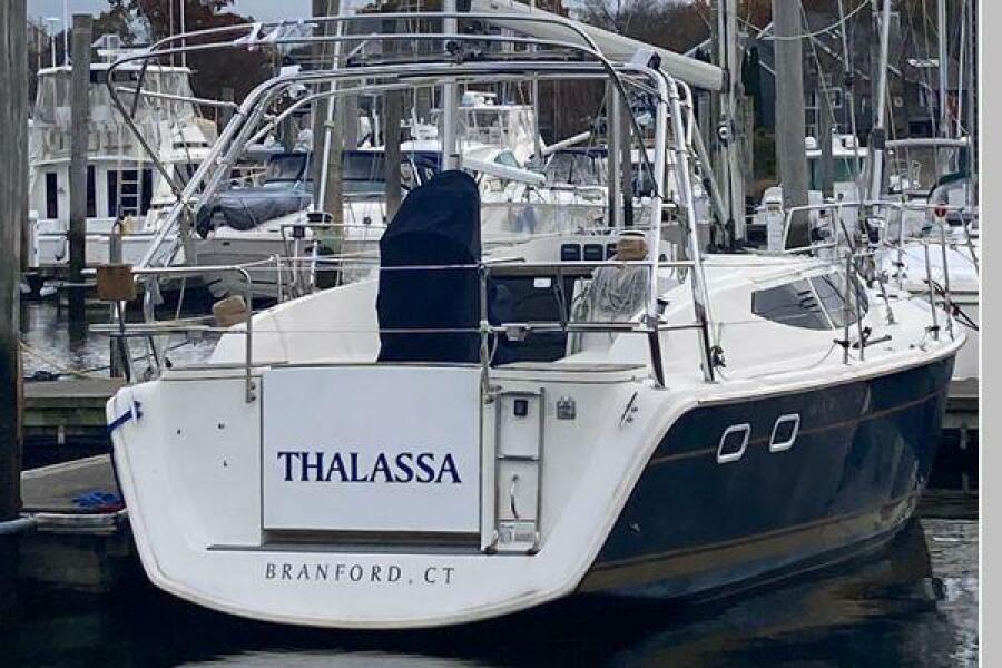 Thalassa is a nice example of the popular Marlow-Hunter 33. The two cabin layout is nicely appointed and clean throughout. Her warm and bright interior is both comfortable and functional. Her full compliment of sailing and navigation instrumentation she is a fun and easy boat to sail.