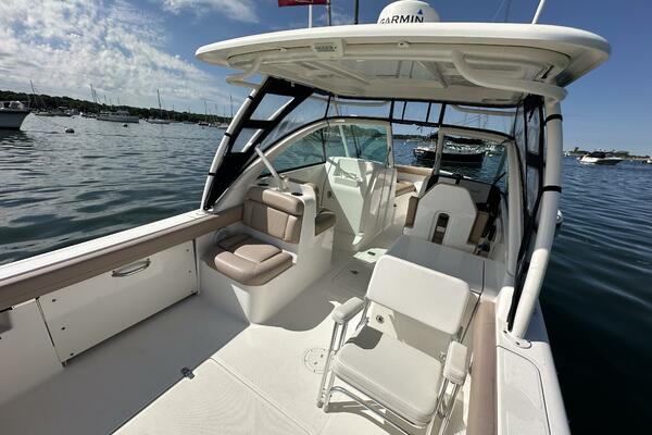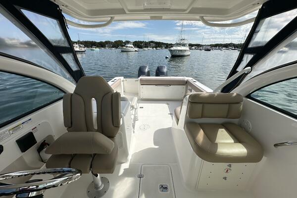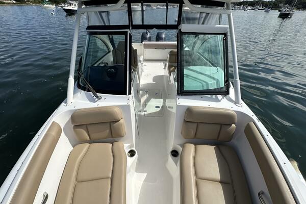 Adding to the graceful lines and dependable construction of the DC 265 is the infused windshield frame matched with large tempered glass panels providing complete unimpeded visibility forward, port and starboard. The windshield has a walkthrough center panel with a double latch and a wiper to starboard. Captain and passengers will also appreciate the uncluttered visibility from ample seating found throughout the boat. Luxurious bow seating, port side forward and rear facing seats along with recessed port and stern seating accommodates the entire family and friends on all your adventures. The DC 265 offers endless possibilities for exploration.