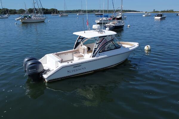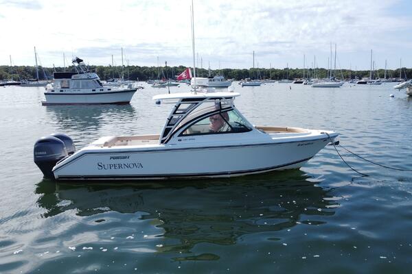 The 26 foot dual console hull was specifically engineered for its’ anticipated use; with family fun, casual fishing, cruising and marine sport utility in mind. This beauty is backed by a proven production process that incorporates vinyl ester resins hand laminated using custom engineered fabrics, infused one piece structural stringer systems and infused bonded windshield systems. Pursuit power comes from tinned copper wire electrical harnesses custom built for each boat. All electrical components are connected to the harness with water proof plugged electrical connections. Custom fitted water and fuel systems with compression fittings, manganese bronze seacock’s and strainers all come together to create a timeless proven approach to building a quality product that will keep its value for years to come.