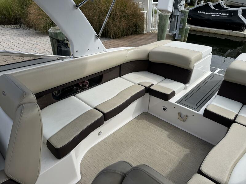 The remarkable Regal 2700 is not only big on fun, but space as well. Offering extended seating options, this boat is bound to accommodate friends and family with plenty of room to spare. Try the U-shaped layout with the swiveling captain’s chairs for the utmost in cockpit comfort.