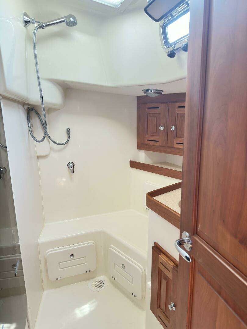 - Forward cabin with vanity sink and full custom V-berth mattress