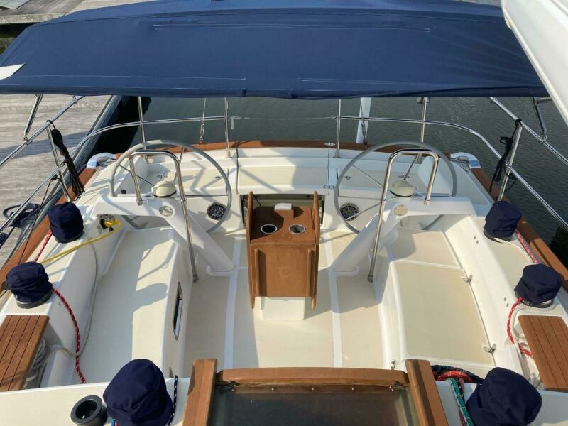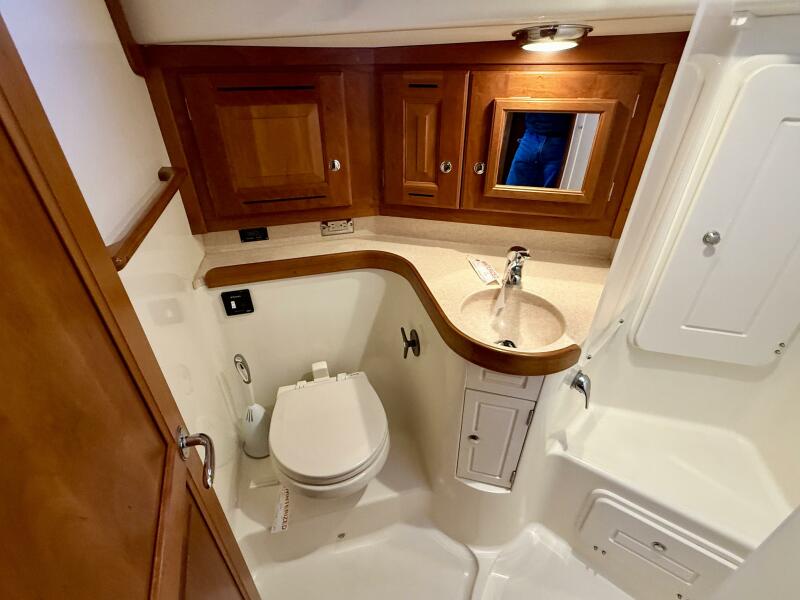 - Head: A separate stall shower with a VacuFlush marine head is located on the port side.