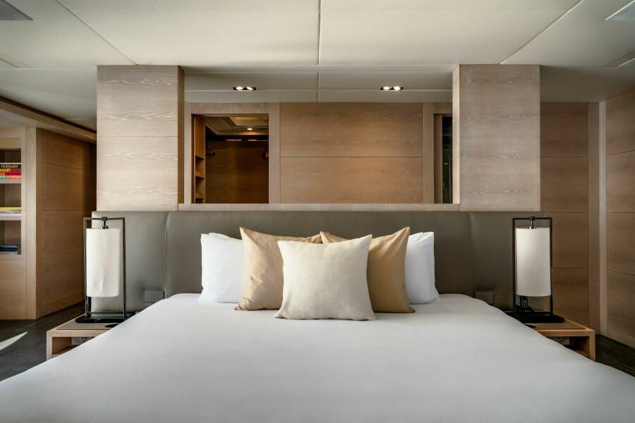 Built and designed by AB Yachts, the 44.6m FAST & FURIOUS was delivered in 2016, boasting absolute power and elegance for an unforgettable experience. Her immaculate interior with patterned woods and neutral warm colours makes one of the most compelling and admirable yachts in her sporty category. She comfortably accommodates up to 10 guests across five spacious staterooms, including a Master suite with drop down balcony. The exterior offers entertainment and lounge spaces from foredeck, sundeck to beach club, stylish new party deck and bar. The lower deck offers a Gym & Office space. For the speed lovers to cruise between port of calls fast, she is a unique Superyacht to perform fast in stability. Powered by 3x MTU M94 engines, FAST & FURIOUS is cruising comfortably at 37 knots, reaching a maximum speed of 42 knots.