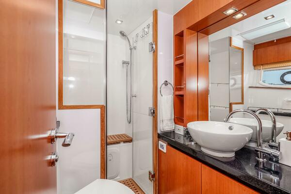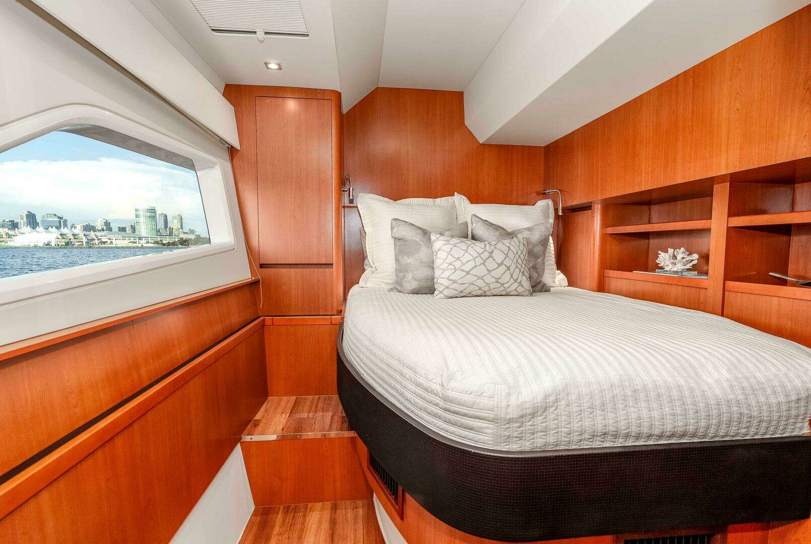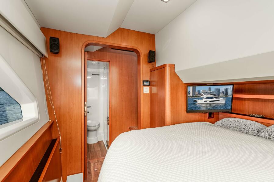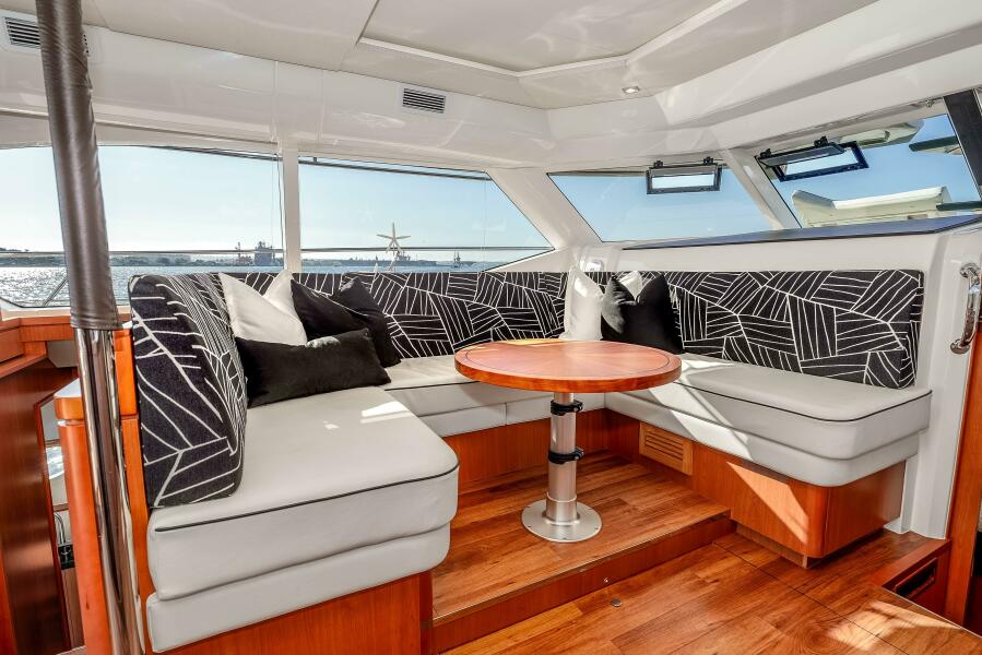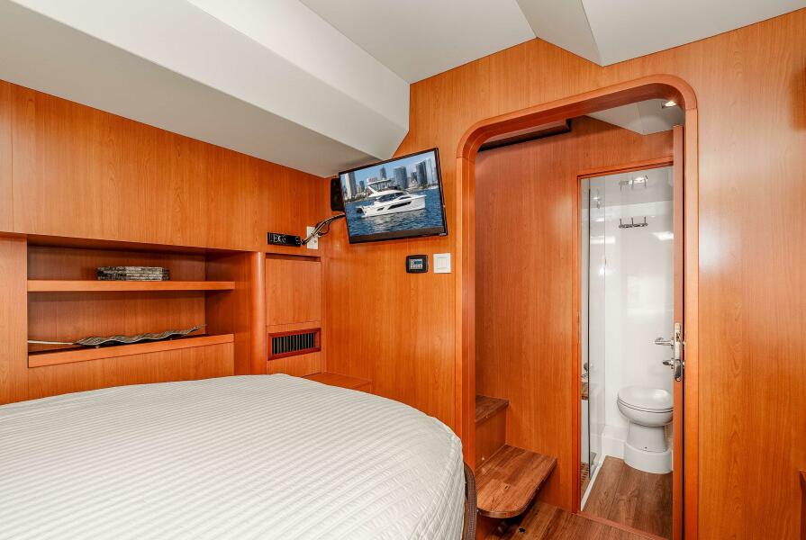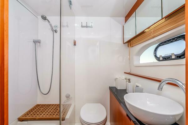 The Aquila 44 has earned its reputation for stability, efficiency, and smart design, and this boat really shows you why. Step inside and you’ll immediately feel the openness of the salon and it’s panoramic windows, a comfortable dinette, and a galley that connects seamlessly to the cockpit for easy entertaining and living. Below, three private staterooms each have their own en-suite head, including a full-beam master suite that feels bright, roomy, and practical for longer stays aboard.