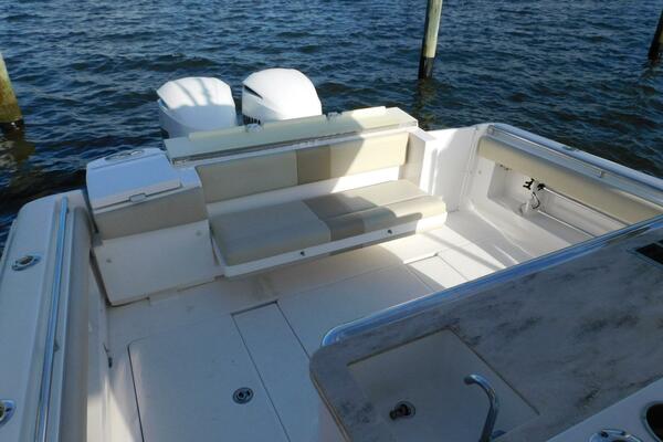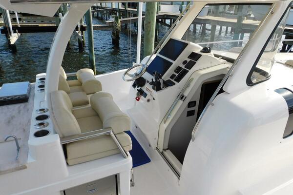 This boat is in great condition and truly a turn key vessel. They set out to design an uncompromising cabin that doesn't sacrifice on-deck walk-ability. What they ended up with was a 327 boat with the feel of a center console, but with a cabin that keeps your family cool on a hot day or ready for an impromptu overnight stay. Its flexible design is complemented by remarkable offshore handling, making for an incredibly versatile vessel.