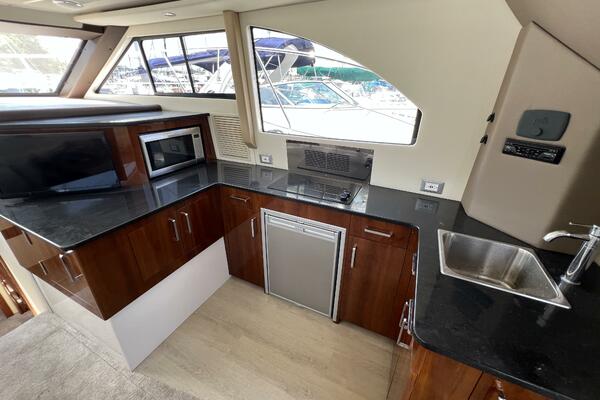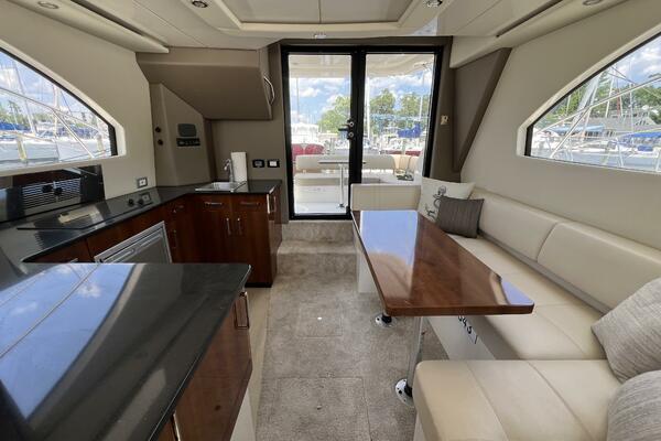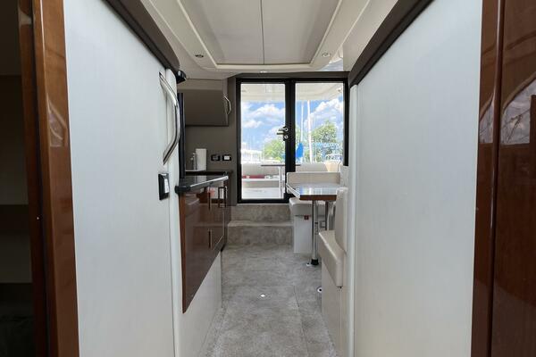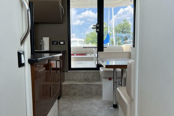 The three-deck, two-stateroom C34 Command Bridge offers real versatility, from her outstanding maneuverability and handling to her elegant living spaces. Right away, you'll notice the aggressive, raised sheer and the hull's bold shape. This innovative design provides an exceptionally smooth, dry, stable ride, while the twin inboard engines ensure that the C34 will be a top performer with quiet, gentle manners at all speeds. The command bridge offers unbroken 360-degree views, and the extra-wide cockpit doors and side decks provide easy access to all areas of the yacht.