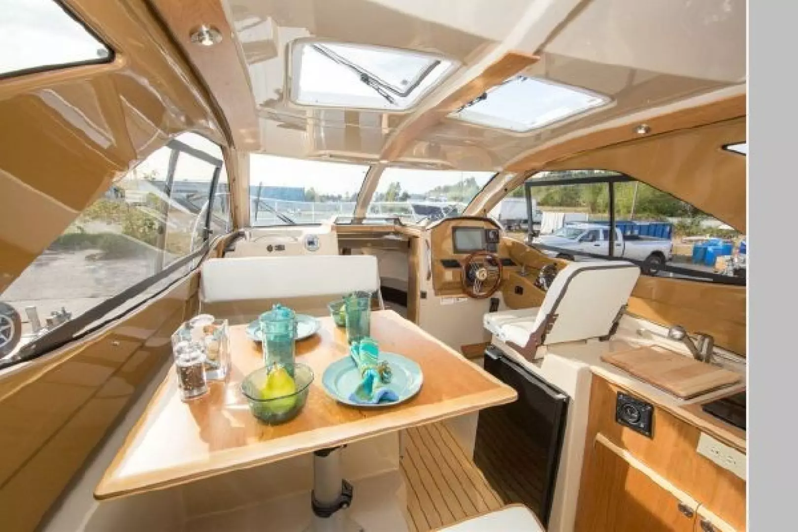 Clean, well equipped, economical and innovative with a low hour (233 hrs) Volvo 240 hp, bow thruster, electronics and priced to sell. She is the ideal pocket cruiser with incredible fuel efficiency (owner claims 2.4 mpg at 24 mph) and excellent use of space. The price is right as the owner is moving up. Reasonable offers will be considered.