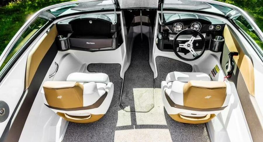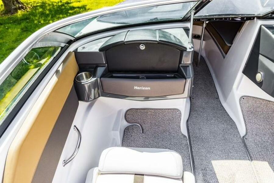 This Four Winns H180 is like brand new! It only knows fresh water. Powered by a Yamaha 115hp 4-stroke outboard with approx. 125 hours. All maintenance performed by local outboard professional. Tune-up was completed last year. This MUST-SEE H180 Horizon is designed for watersports. The sport platform makes it a breeze to pull skiers and wakeboards. It has a very wide beam for spacious seating