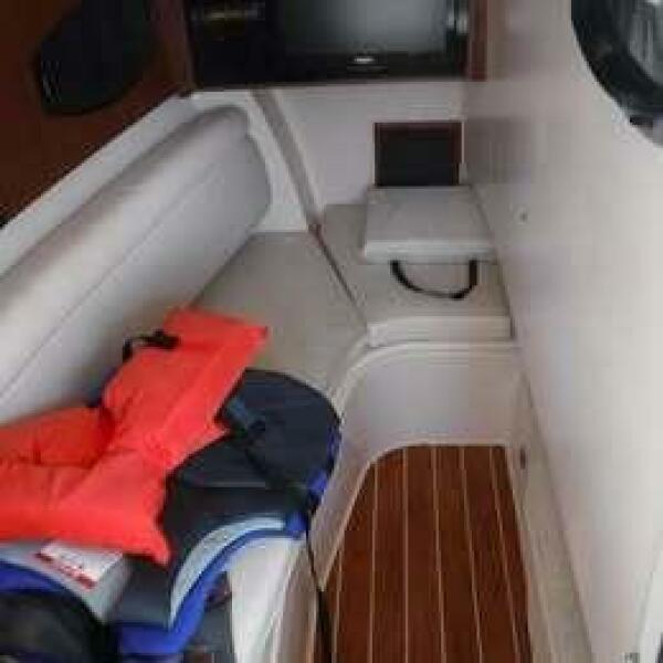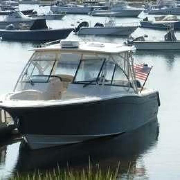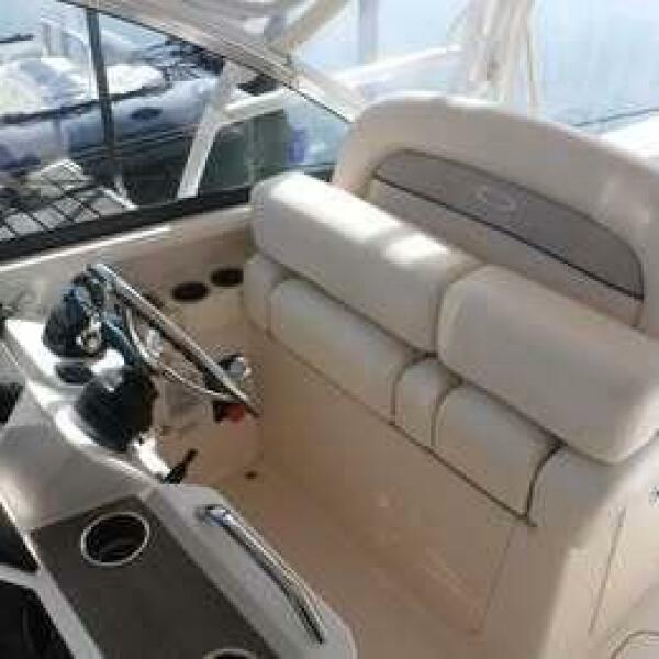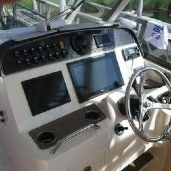 You will find the Joystick and Bow Thruster makes this Grady easy to handle while docking. You can use the Electric Grill under the Sureshade and this 335 Freedom is in the beautiful Pewter Hull Color!