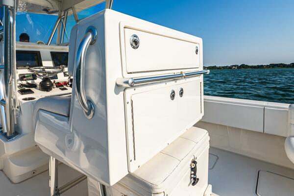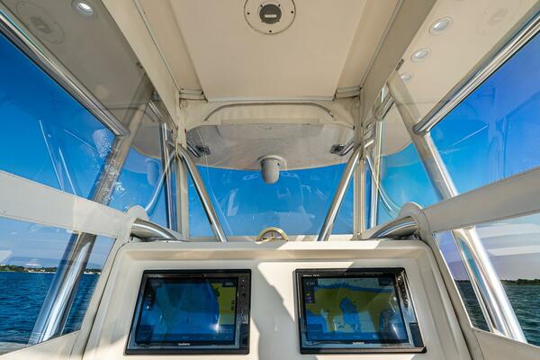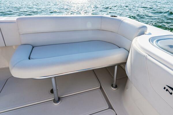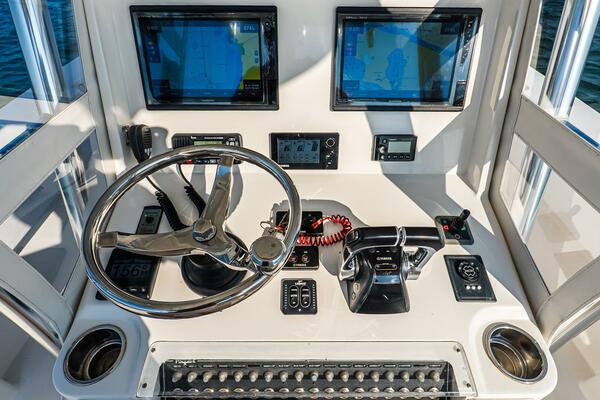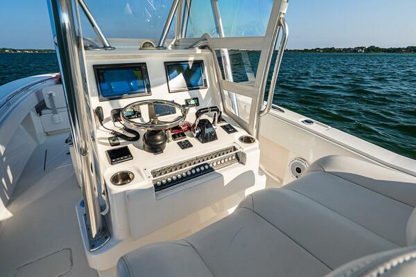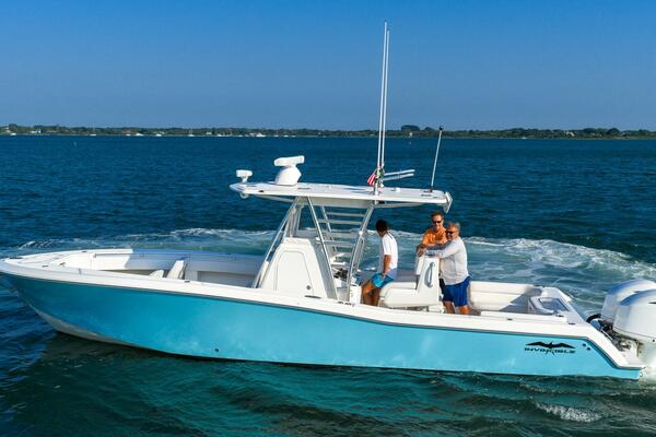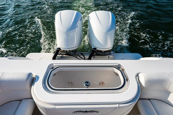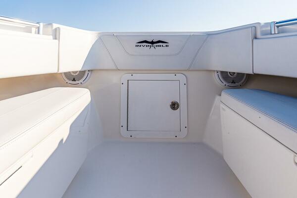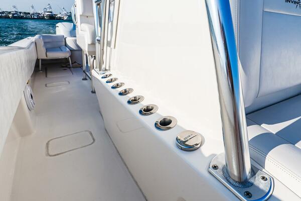 The Invincible 33 Open Fisherman is designed with a wide-open, flush deck layout. This model features a pair of vents in the hull design to help soften the ride, boost speed, and improve fuel efficiency.
