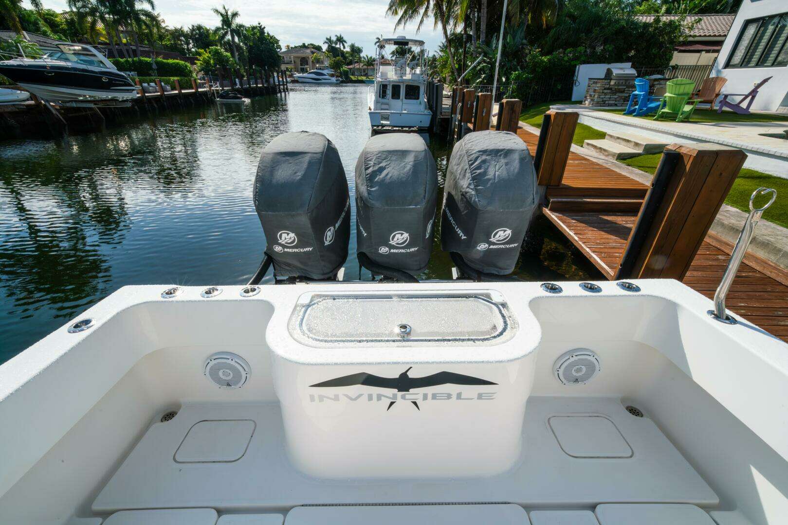 This 2016 Invincible 36' Open Fisherman is the ultimate blend of luxury, performance, and serious offshore fishing capability — built for anglers who refuse to compromise on style or speed. With a deep-vee fiberglass hull and powerful triple Mercury Verado outboards, she delivers a smooth, confident ride and thrilling performance whether you’re heading to the Bahamas or cruising down the coast. The boat’s spacious layout is thoughtfully outfitted for both comfort and functionality, featuring premium cockpit amenities, abundant rod holders, insulated fish boxes with pumps, and Garmin electronics. From the custom leaning post with tackle storage to the additional livewells, and five electric reel outlets, every detail has been optimized for chasing fish. Meticulously maintained with a recent engine service, this 36' Invincible represents exceptional value for a serious sport-fisherman that doesn’t skimp on comfort or quality — ready to take you on unforgettable adventures on the water.