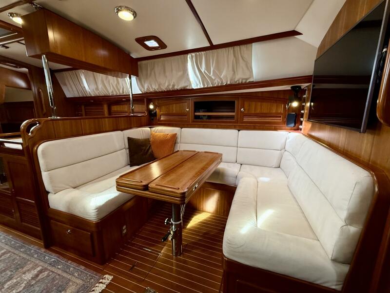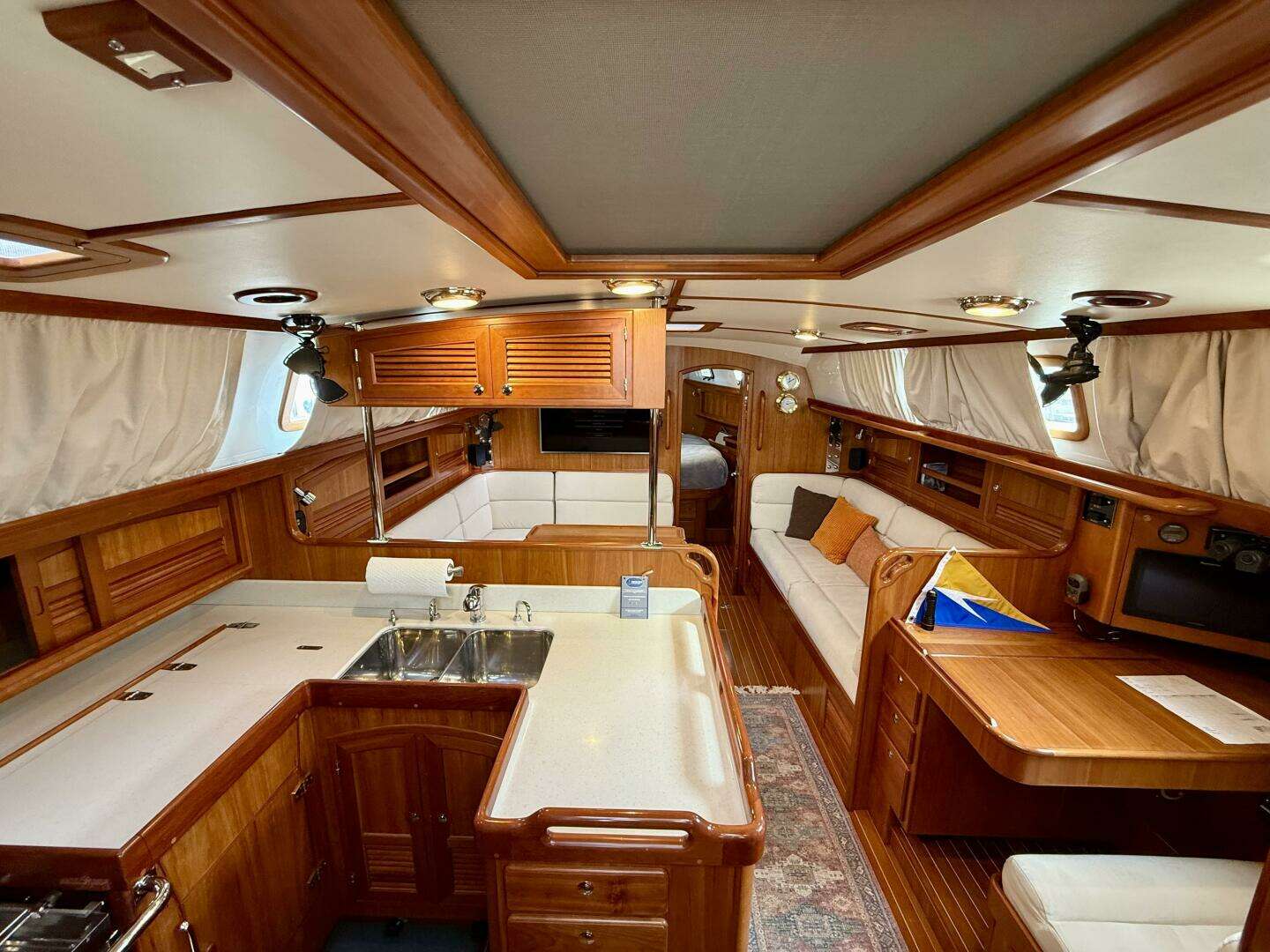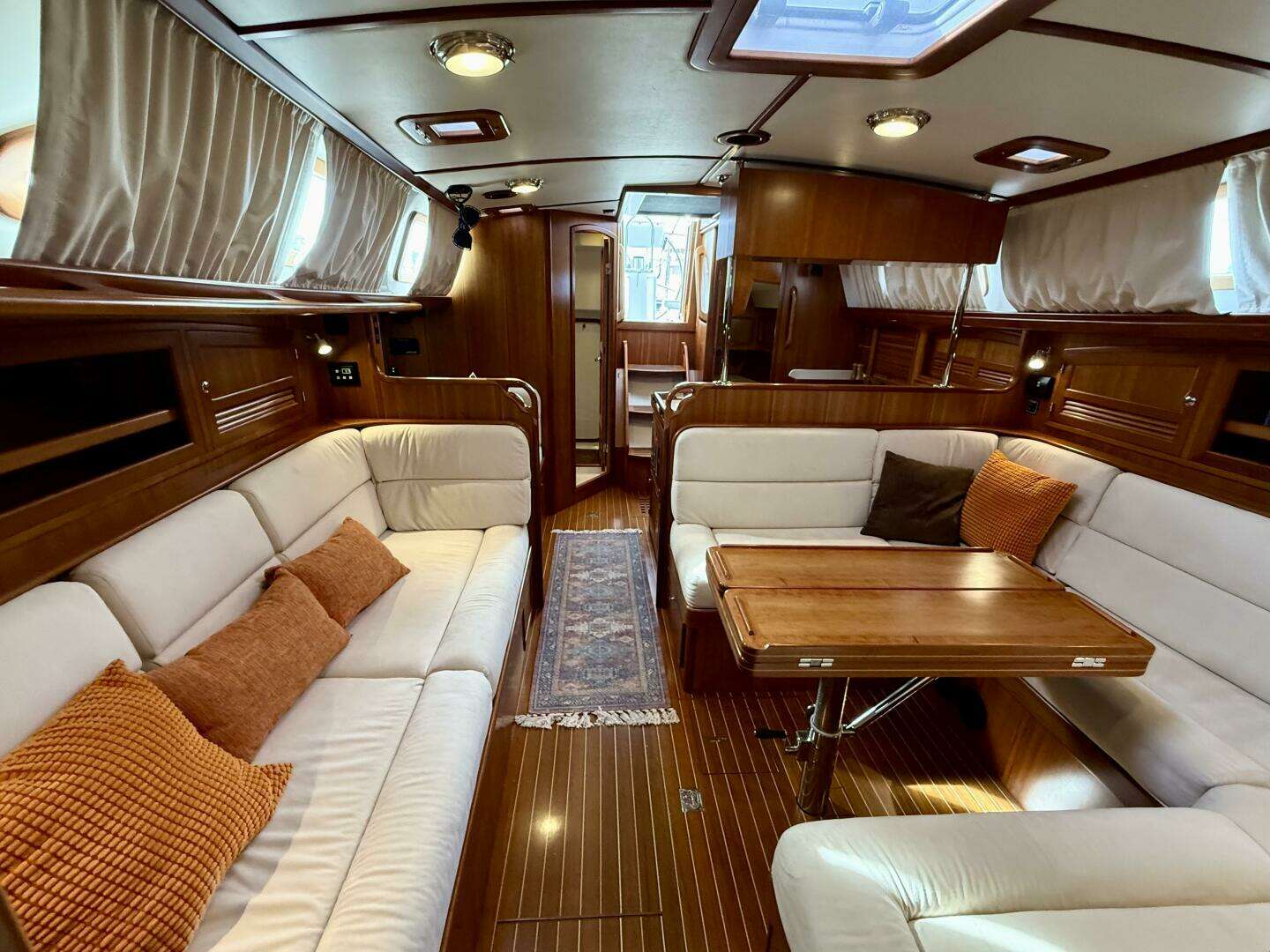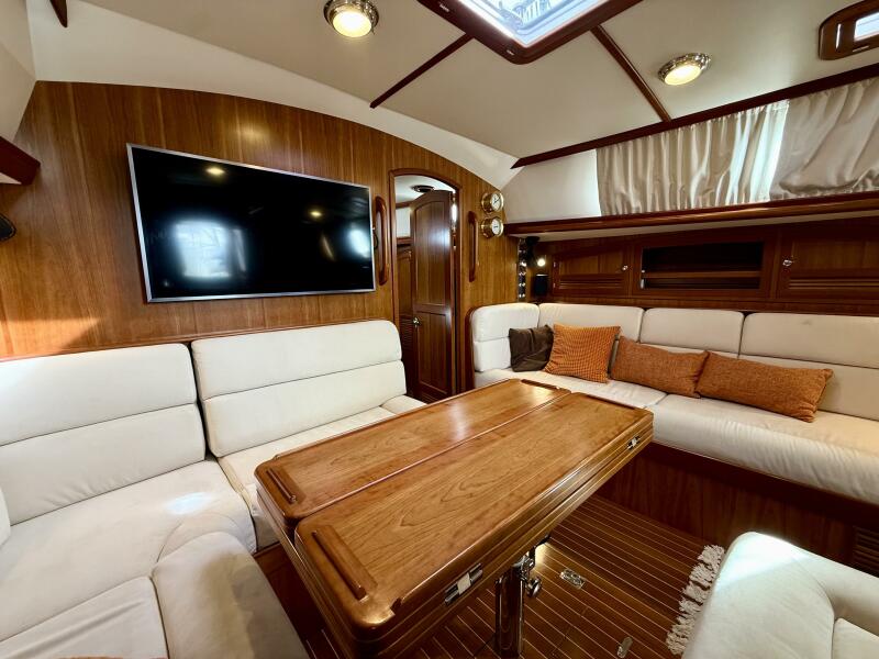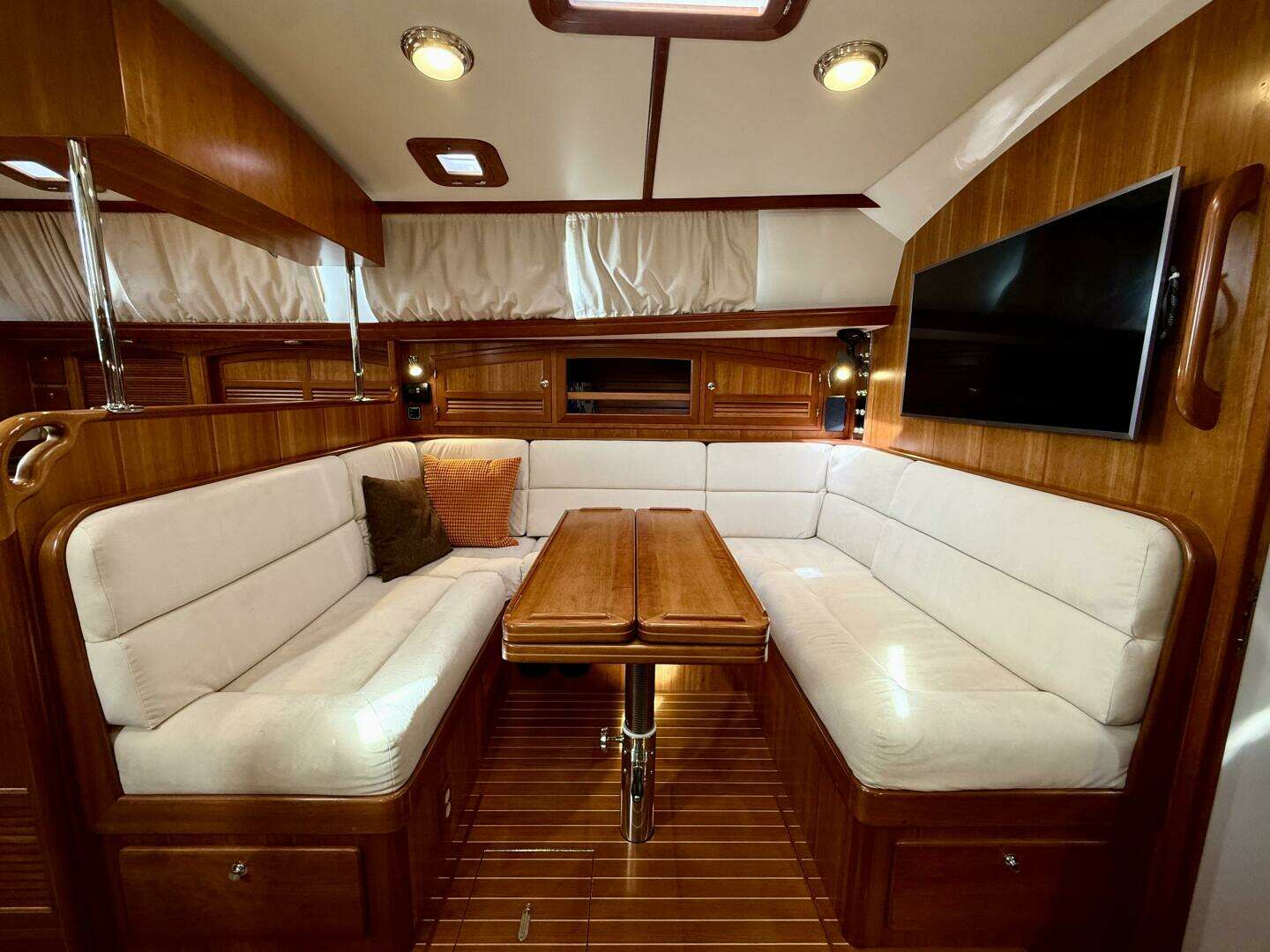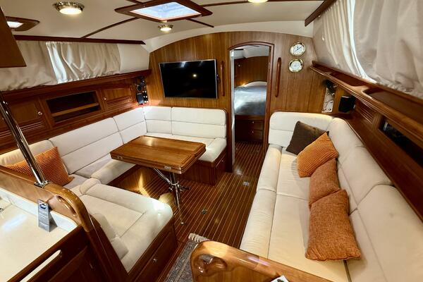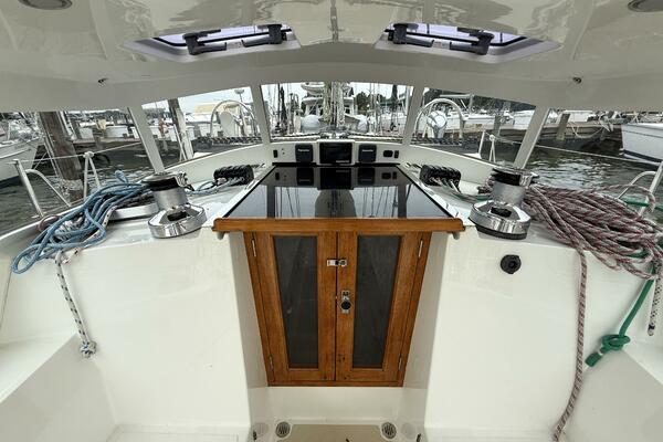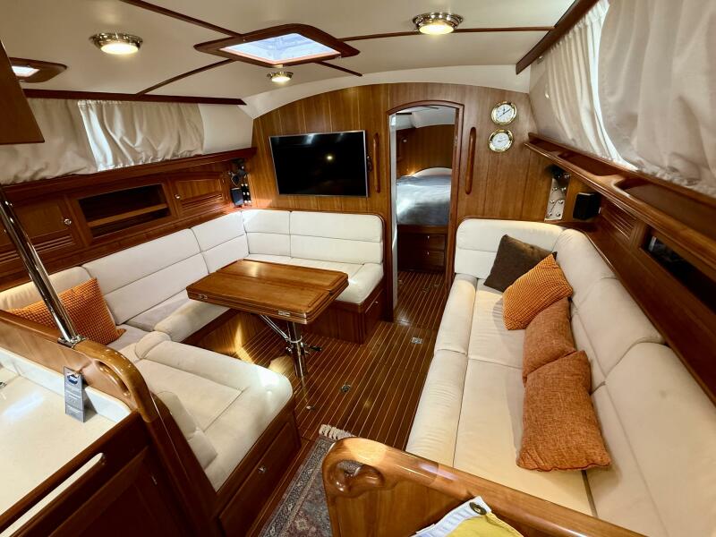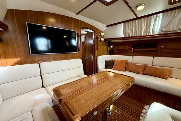 - Layout: The interior is finished in handcrafted teak with a teak-and-holly sole and features a semi-raised salon with large windows for abundant natural light. The three-step companionway allows safe and easy access below deck.