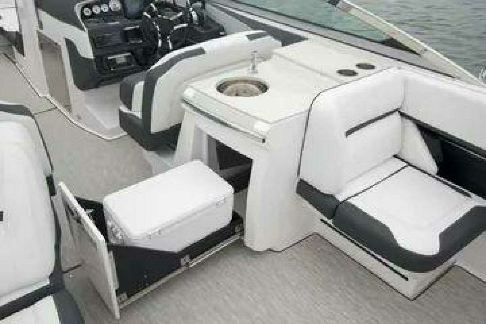 - Expansive bow and cockpit seating with convertible sun loungers
