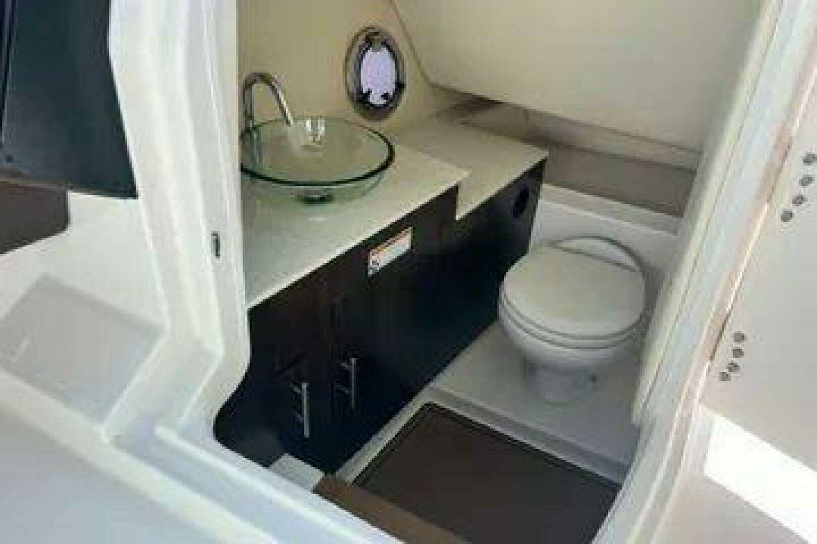 - Enclosed head with sink and storage