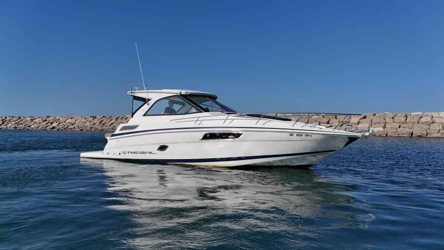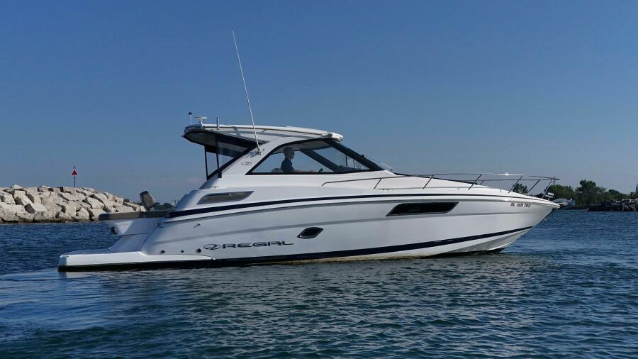 2016 Regal 35 Coupe - Lightly Used - Hammond, IN Now available in Hammond, Indiana, this 2016 Regal 35 Coupe is a turnkey express cruiser with under 655 hours on twin MerCruiser 350 engines. The owner has taken delivery of his next boat, making this exceptionally clean and well-maintained vessel available for immediate sale. Key Features: -Twin MerCruiser 350 MPI engines with Bravo III drives -Joystick control, Skyhook, and Autopilot for effortless navigation and docking -Retractable sunroof in the cockpit for open-air cruising -Expansive cockpit with ample seating and entertainment space -Wet bar with sink, refrigerator, ice maker, electric grill, and flip-down flatscreen TV -Sleeping accommodations for up to 5 -Full galley with microwave, stove, refrigerator/freezer, and ample cabinetry -Well-appointed head with separate shower -Reverse-cycle air conditioning/heat in cabin and cockpit -Extended swim platform and transom storage The 35 Coupe offers a perfect balance of style, comfort, and performance. With her sleek hardtop design, spacious interior layout, and long list of amenities, she’s ideally suited for both weekend getaways and entertaining onboard.