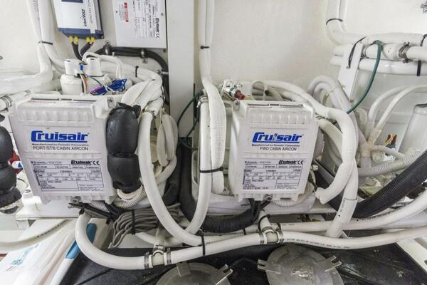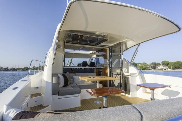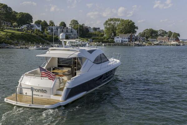 Maintained to high standards by its owners. Professionally serviced by factory trained technicians including annual services of motors, pod drives, genset and gyro. Multiple oil/filter changes to the genset during the season. Twice a year, the exterior gets a multi-day, professional detailing including polishing and sealing of the teak floors. Lightly used in the Northeast for 6 months per year. "Pronto" is the last 5000 SY produced by Riviera- you cannot own a newer one.