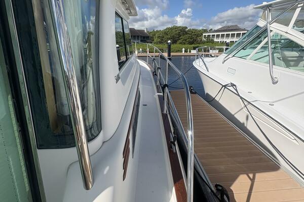 The pod drive train of the Sabre 38 offers excellent fuel economy, an important consideration in these days of uncertain diesel prices. Pods also lower noise by pushing out exhaust through the propeller stream and importantly allow confident boat handling when docking or maneuvering in tight spaces.