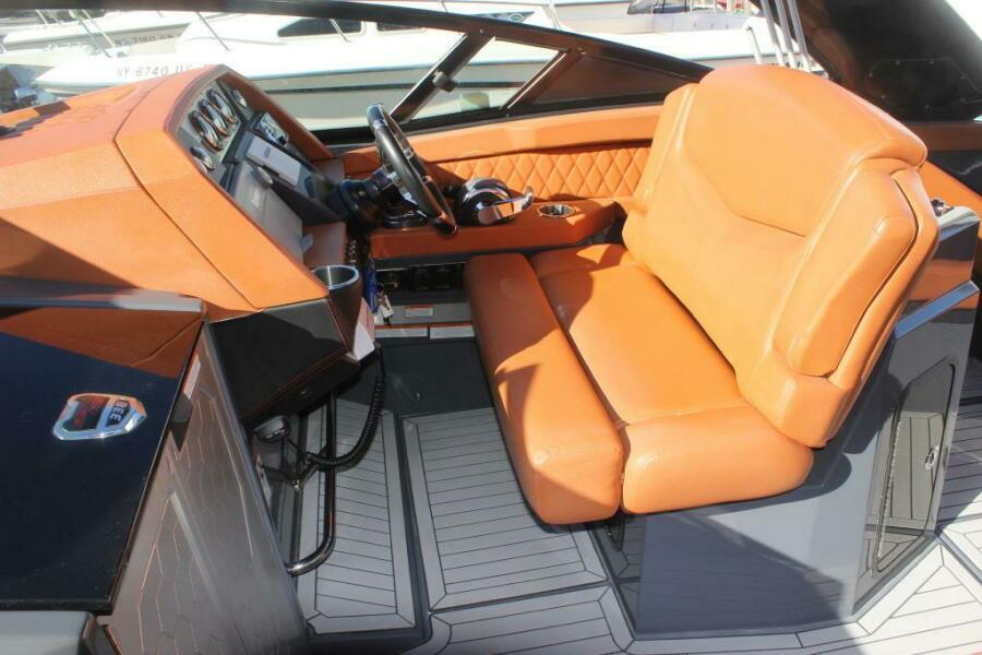 The 2017 Cruisers Yachts 338 BR South Beach is a good example of a low hour lightly used vessel. She is the desirable Space Gray in color with Ochra Upholstery. This color combination makes this vessel one of the sharpest looking boats on the water. She is fully loaded with a Premium Kicker Audio System, Captains Call CAT Exhaust, Joystick Operation, Electric Convertible Sunbed and much more. She is powered by T-350 HP 6.2 Mercruiser Bravo 3, CAT, DTS, Axius Premier, Seacore engines with 144 hours. Check out the Full Specs and call for an appointment to see her. She is located in Southold NY.