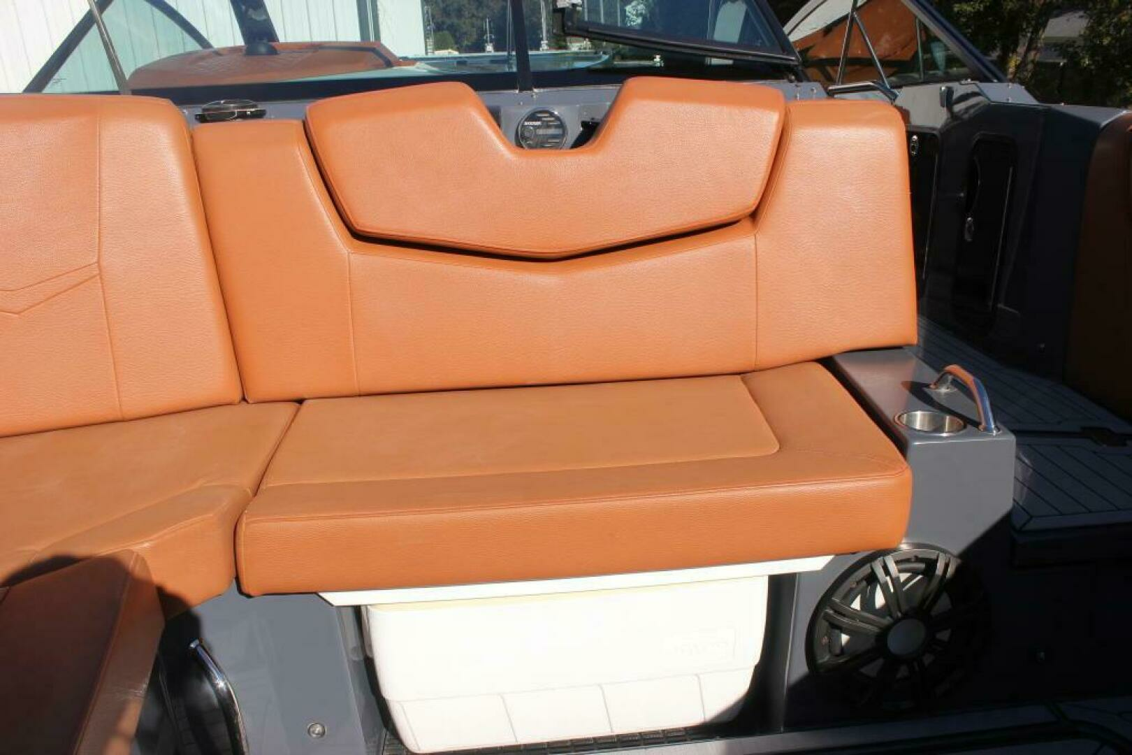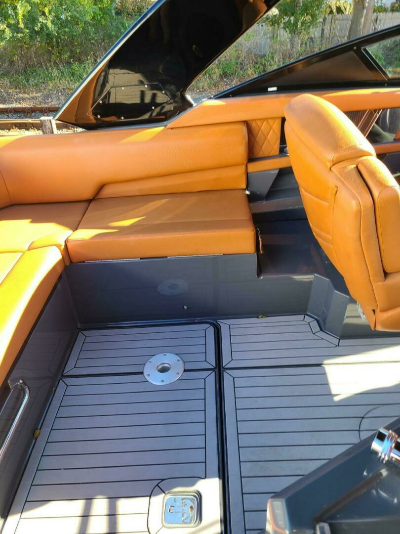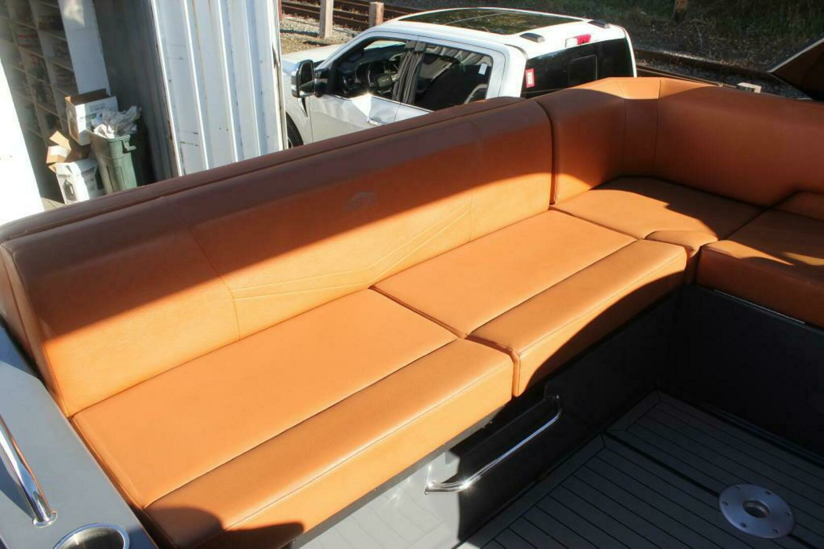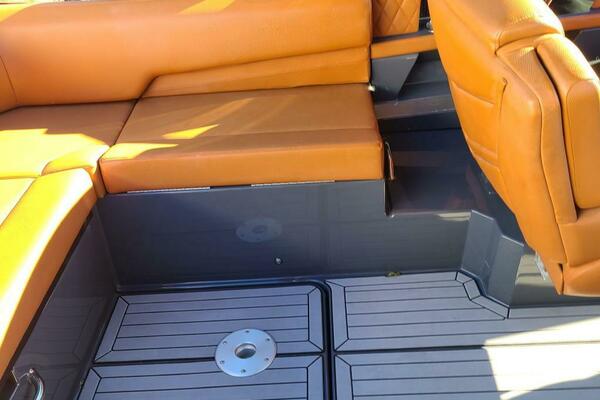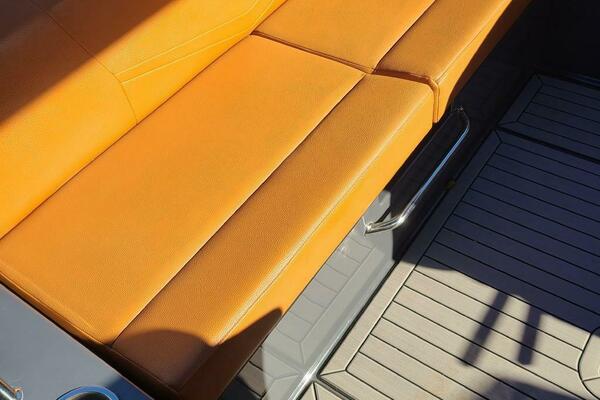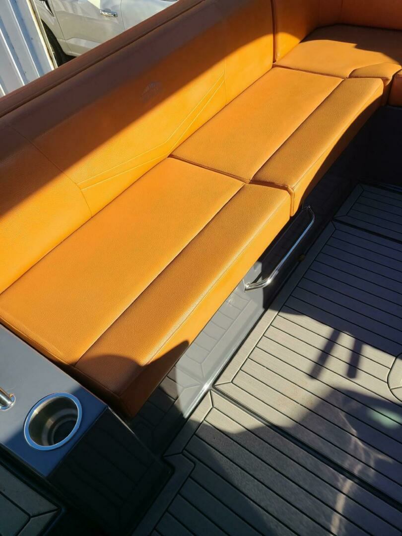 L-Shaped Main Deck Seating covered in Ochre Upholstery