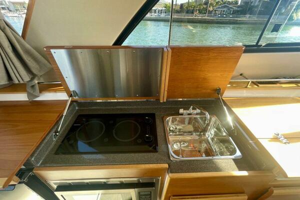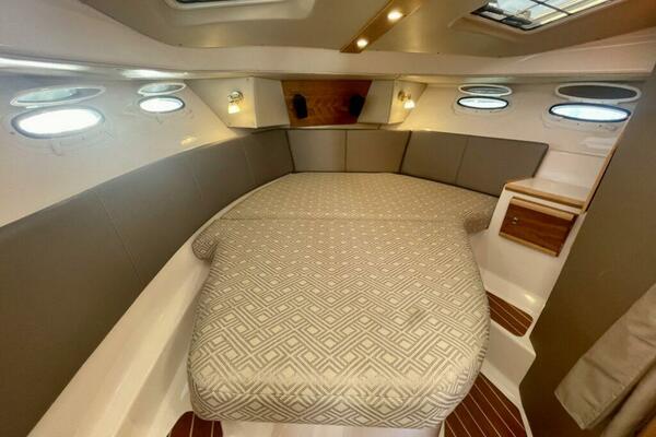 The Cutwater 302 Sport Coupe cockpit is perfect for fishing with its large square footage, 30 gallon live well, large fish box, rod holders, and sink. Once you’ve caught dinner, food prep is a breeze with the Euro-style galley, which is ideal for buffet or refreshment service. The cockpit is easily converted for entertaining with plenty of seating and a drop-in BBQ grill.