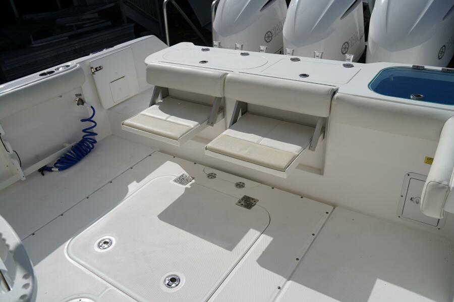 Key highlights: triple Yamaha F300 white outboards, joystick (Optimus) steering, twin Garmin 7616 displays, Garmin autopilot, windlass anchor, hydraulic steering, stainless propellers, live-well, fresh- & raw-water wash-downs, full head, and more. With the extended hardtop for protection and extended time on water, this boat stands out as a full-featured offshore center-console.