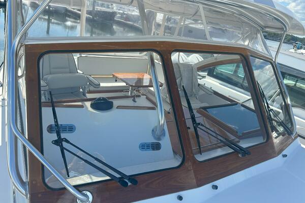 A REAL CLEAN VESSEL TWIN VOLVO 225 HP D-4 DIESEL POWER-- WITH 302 HOURS-- HARDTOP WITH ENCLOSURE--- FULL ELECTRONICS INCLUDING FLIR NIGHT VISION The new Fortier 30 is an honest boat for fishing and more extended cruising. A proven design by Eldridge-McInnis, she is an outstanding fiberglass boat. Her design and construction make the Fortier 30 comfortable in any weather. The molded in keel and spray rails offer exceptional stability and gives the boat a soft, dry entry into the water. The construction of the Fortier 30 is unique to the industry in that experienced craftsmen have laid layers of fiberglass over a Core-Cell foam core. The result is a very quiet ride, while insulating her against the contrasting cold water temperatures and warm air temperature. The stringers run from bulkhead to transom. The quality of materials and workmanship make the Fortier 30's the stiffest hull in her class. The Fortier 30, like it's little sister the Fortier 26, and its bigger brother the Fortier 33, is a combination of both boats. The new Fortier 30 has a large cockpit, approximately the same size as the Fortier 33. The redesigned, opening port windows adds classic Down East looks similar to the iconic Fortier 26. Whether your goal is fishing or cruising or both, the large open cockpit lends itself to customizing in order to satisfy any owner's individual needs!