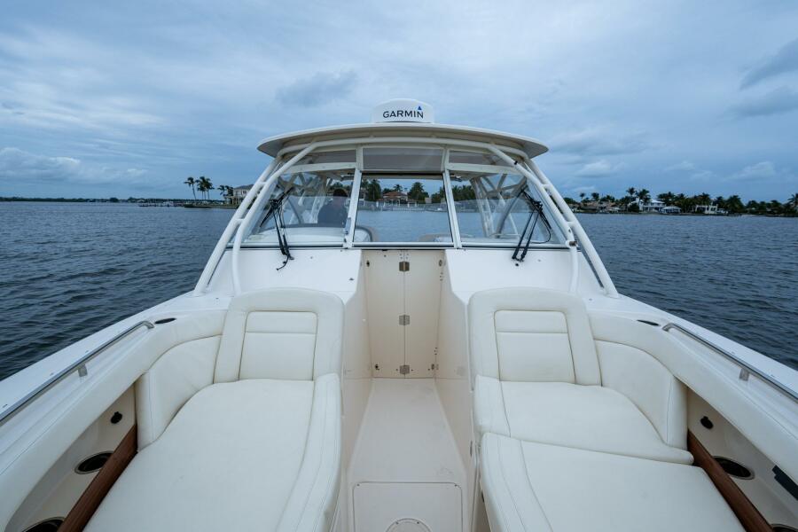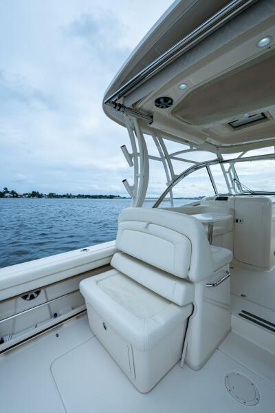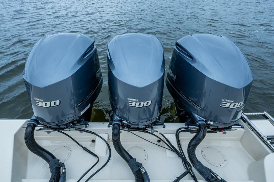 Her preferred triple Yamaha F300's give you the reliability and performance over the Twin 350 engine package. Dual Garmin 12" plotters, autopilot, radar and a fusion stereo with all JL Audio speakers. The vessel is loaded with Helm master controls with joystick steering, retractable sunshade, electric grill in cockpit, generator, air conditioned helm and inside console berth.