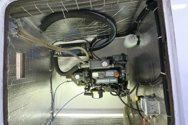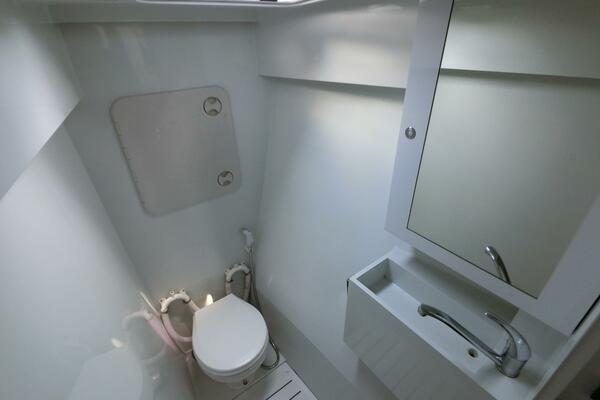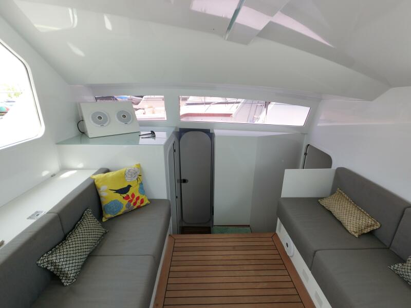 Twin Yanmar ~30hp diesels are housed under the aft bunks for easy access and provide dependable propulsion when needed. Thanks to her lightweight foam composite construction, Ventura sails efficiently even in light winds.