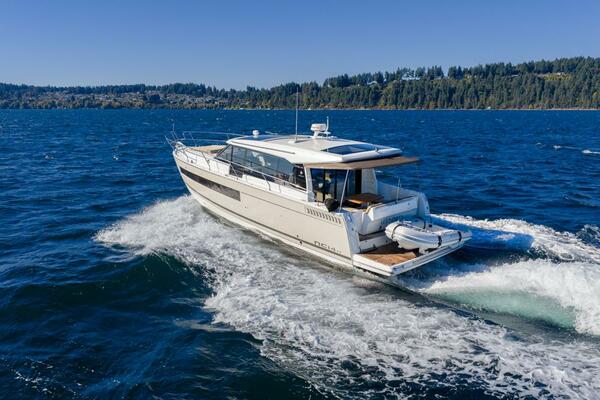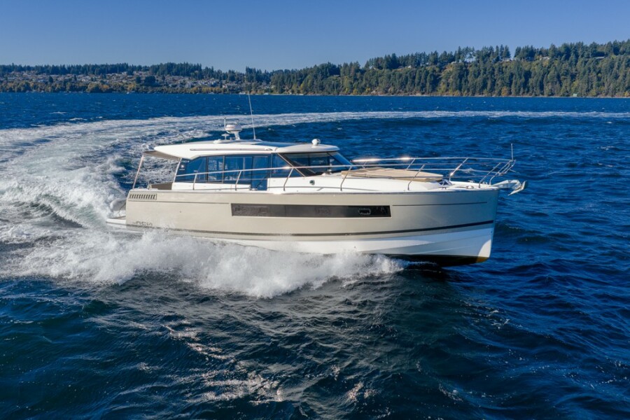 Bees Knees is a beautifully maintained 2017 Jeanneau NC14 — a perfect blend of modern European design, efficiency, and comfort. This two-stateroom, one-head layout is ideal for cruising the Pacific Northwest or beyond, offering a bright, open interior with excellent visibility, joystick docking, and exceptional storage throughout.