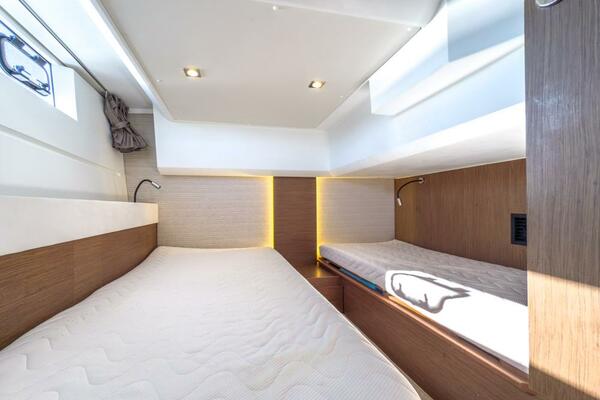 Features two stateroom, one head layout with large closet storage in the guest landing area.