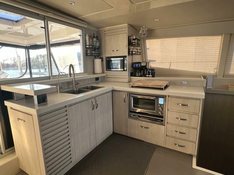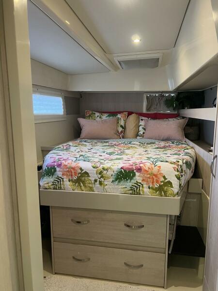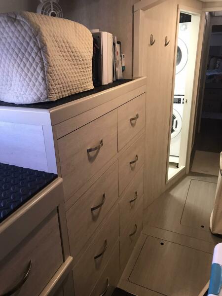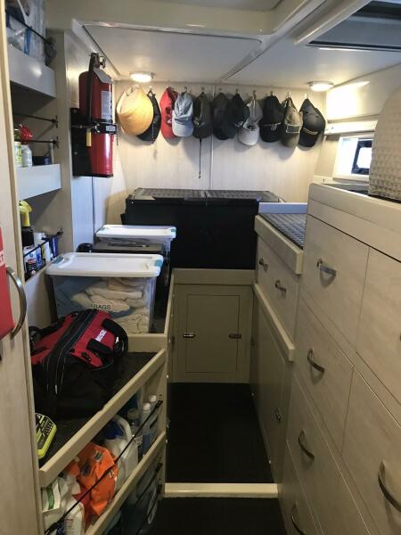 This configuration retains three queen cabins and three and a half heads, all with full showers, while dramatically improving onboard storage, service access, and day-to-day livability. For owners planning extended cruising or full-time liveaboard use, this is one of the most practical and desirable layout modifications available on a Leopard 48.