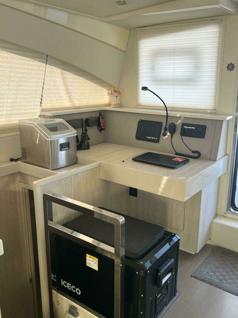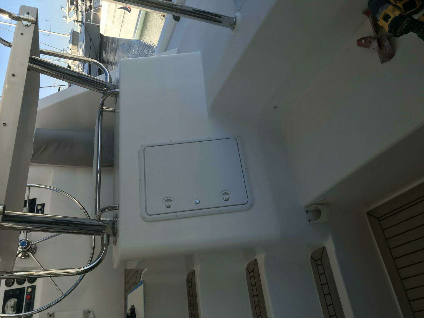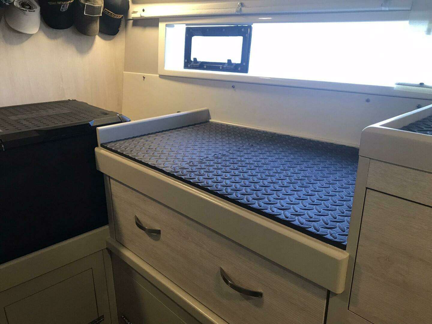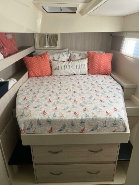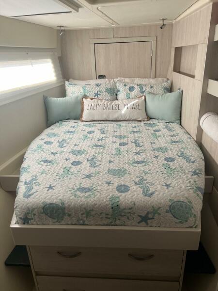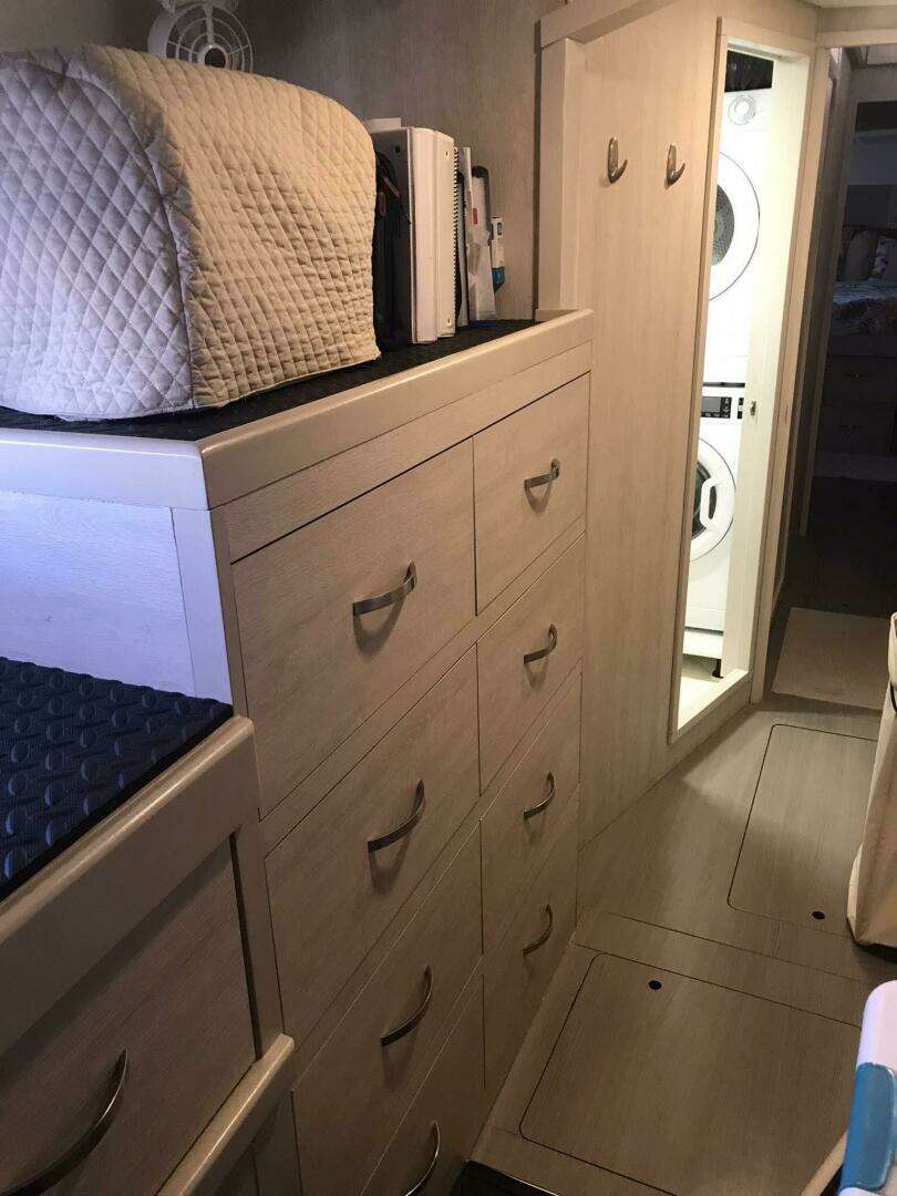 • Converted starboard forward storage room with custom cabinetry and watermaker