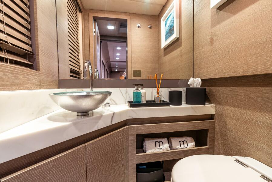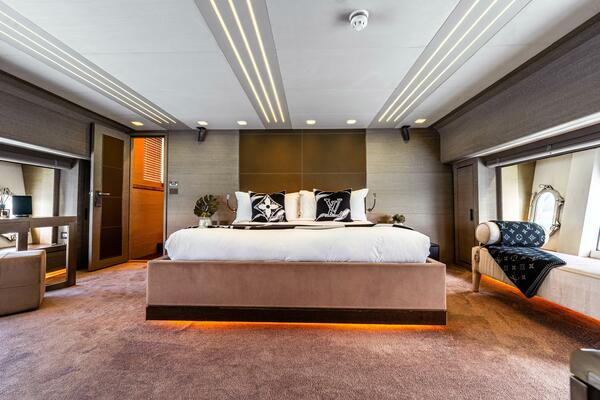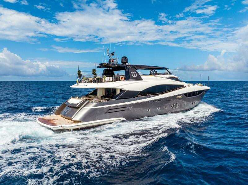 M was purchased by the current owner in December 2023. Over a seven month period the owner replaced all of the interior and exterior soft goods, a few pieces of interior and exterior furniture, all of the artwork and all of the audio video equipment. It was at this same time that the main engines were overhauled and zeroed out and a brand new black water MSD system was installed. The M is in true turn-key condition.