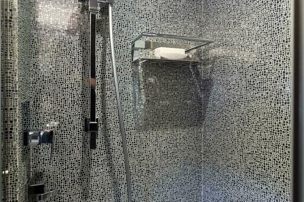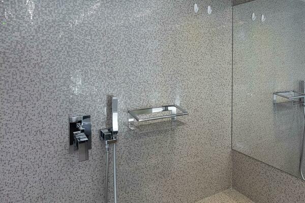 - Walk-in Shower w/Mosaic Tiles, Bench Seat, & Rainshower head