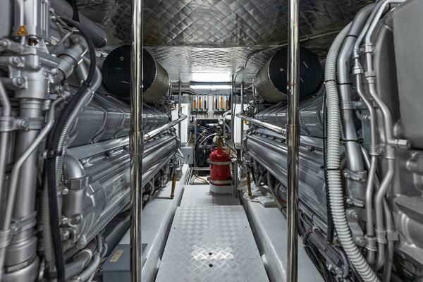 PHOENIX RISING is a remarkable blend of speed, luxury, and Italian design excellence. Powered by twin MTU 2638 hp engines with Top System Drives, she cruises effortlessly in the mid-40 knot range and can reach top speeds exceeding 50 knots.