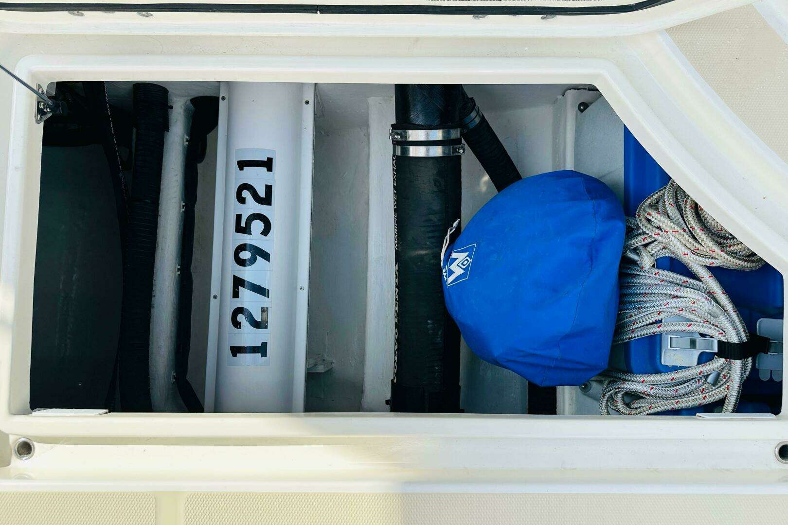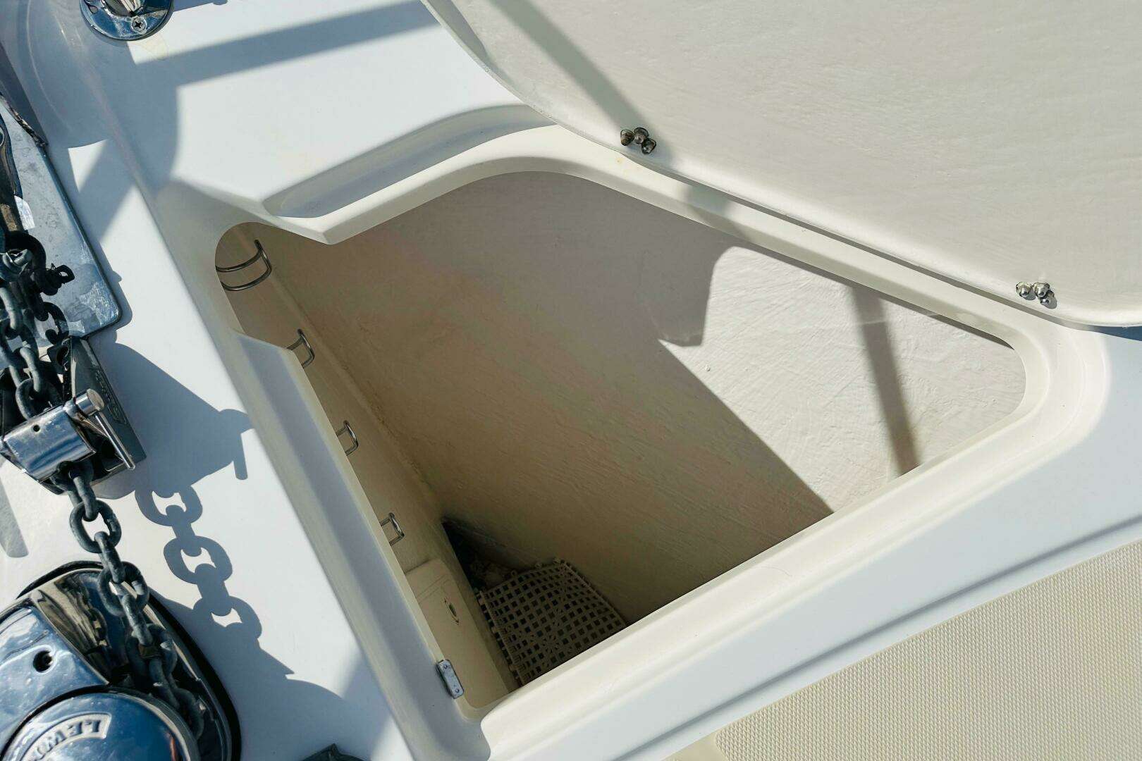 - Dock line holder racks installed in both bow lockers