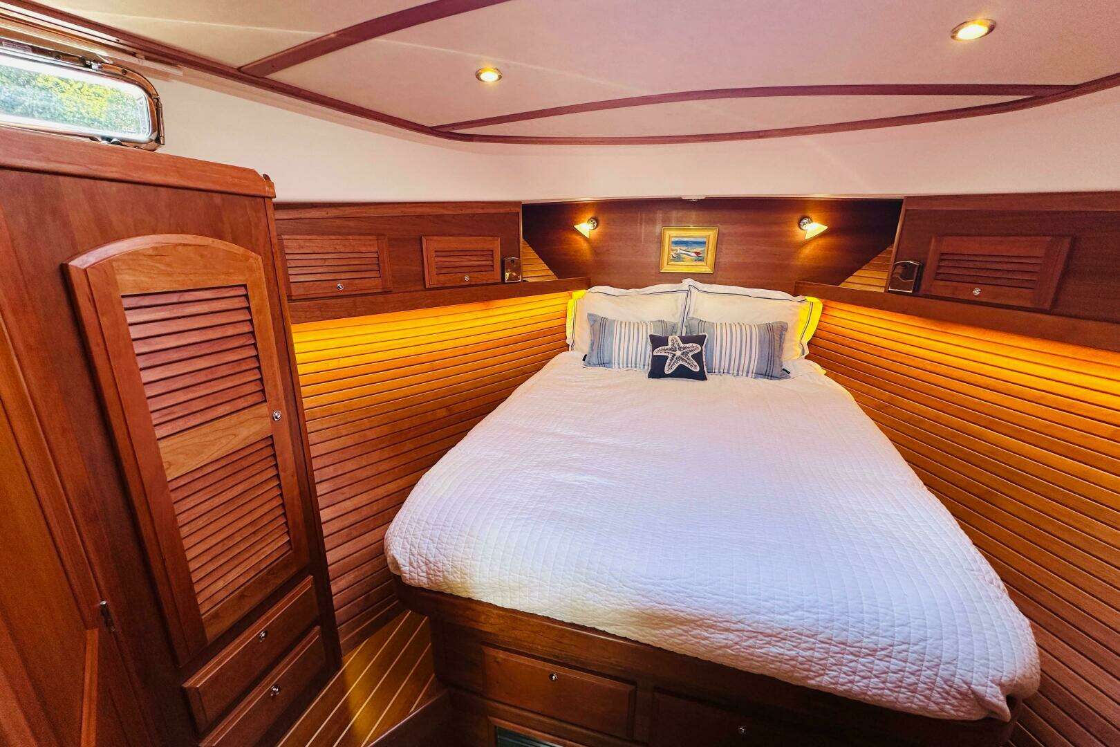- Spacious Island Berth layout with 5" cushion. ¾” laminated trim
