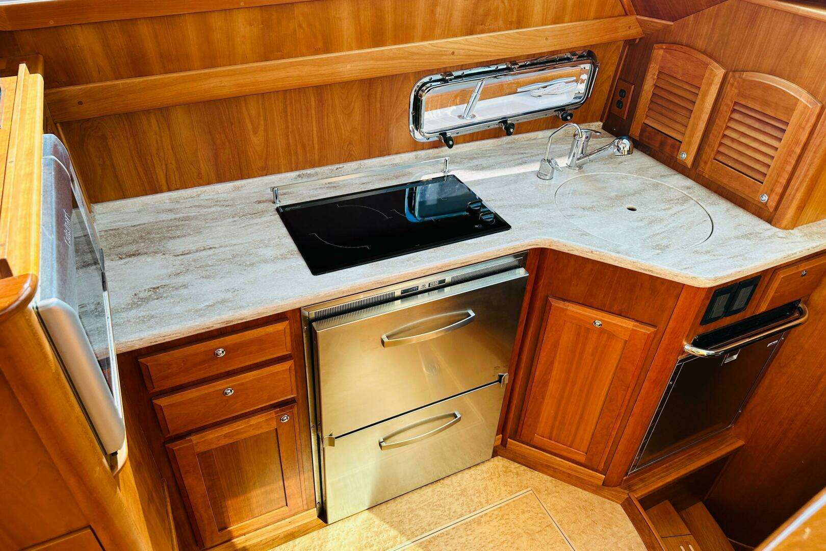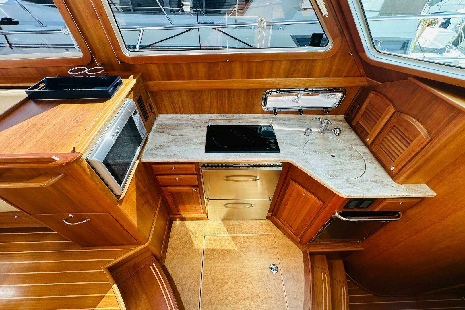 - Large drawer under microwave opens athwartship