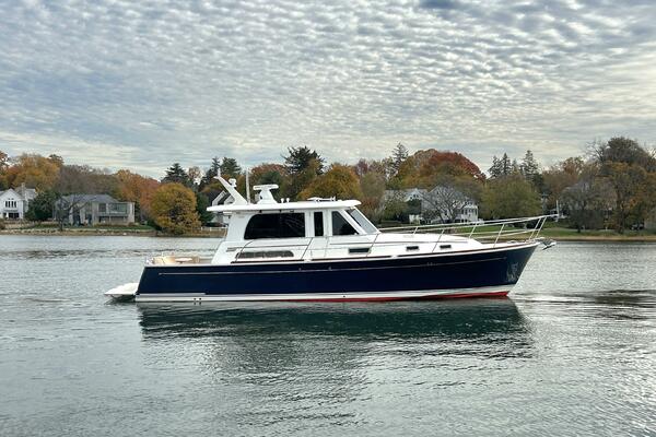 This 2017 Sabre 42 Salon Express presents an exceptional opportunity to own one of the finest downeast-style cruising yachts in her class. With the larger Cummins QSB 6.7 diesel engines paired to Zeus pod drives, Garmin 7616 multifunction displays, and a sleek navy blue hull with red bottom paint, this vessel has been well-maintained and shows with distinction. Sabre’s renowned craftsmanship, quiet running performance, and thoughtful interior layout make this an ideal boat for weekend cruising, longer voyages, or comfortable onboard entertaining.