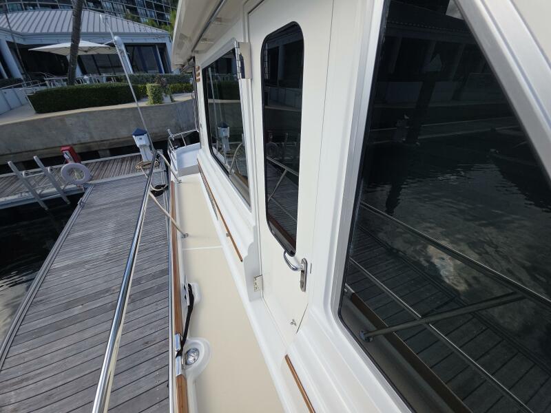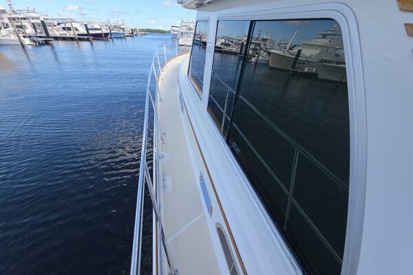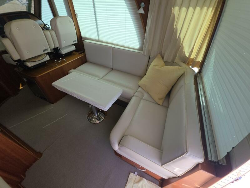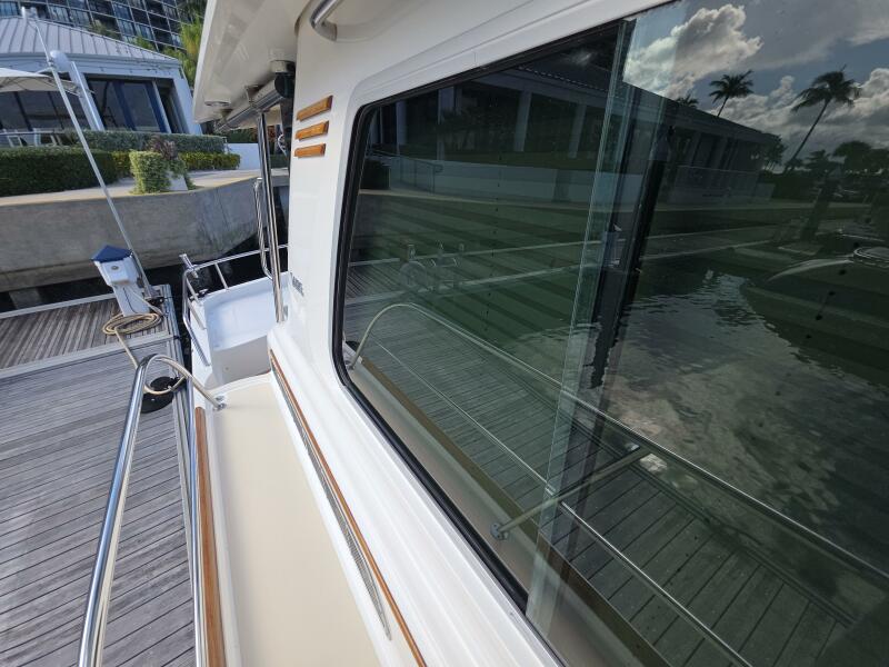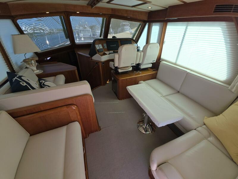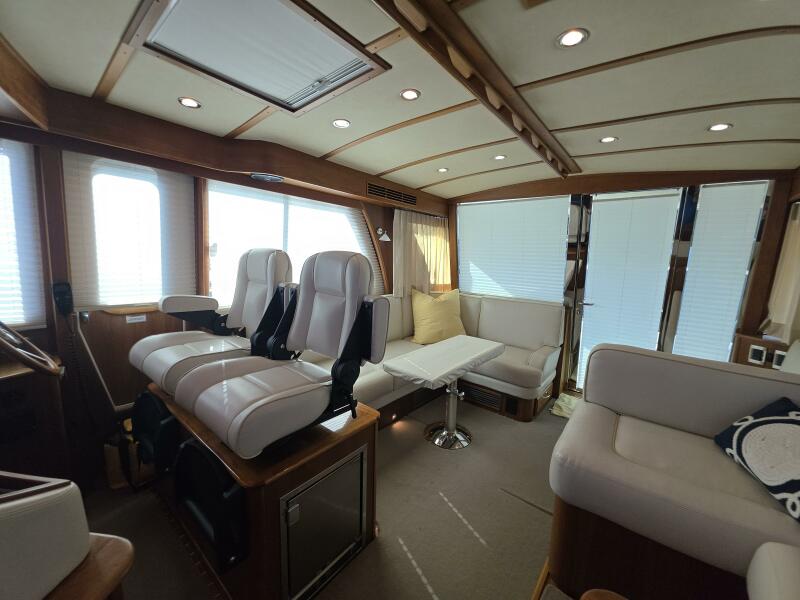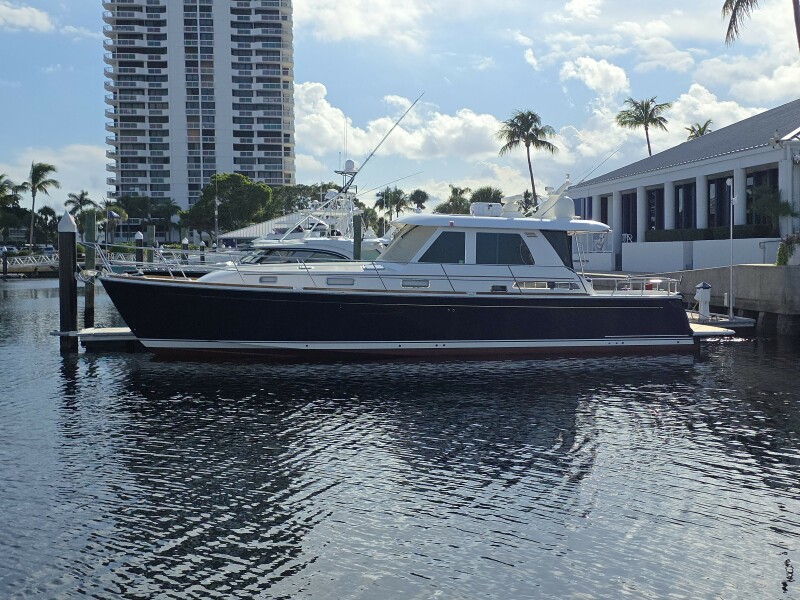 The 48's traditional exterior profile belies the contemporary performances of her vee-hull. She cruises at 27 knots and at wide open throttle she'll attain more than 32 knots. With the Zeus pod drive system, turns at speed are as exciting as they are in a fine sports car but perhaps even more exhilarating is the quiet that one experiences at cruise speeds. Less than 75 Dba makes her one of the quietest motoryachts available today. The joystick and Skyhook operations give every Captain the confidence to dock her in the most difficult of circumstances.