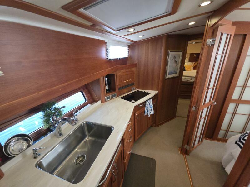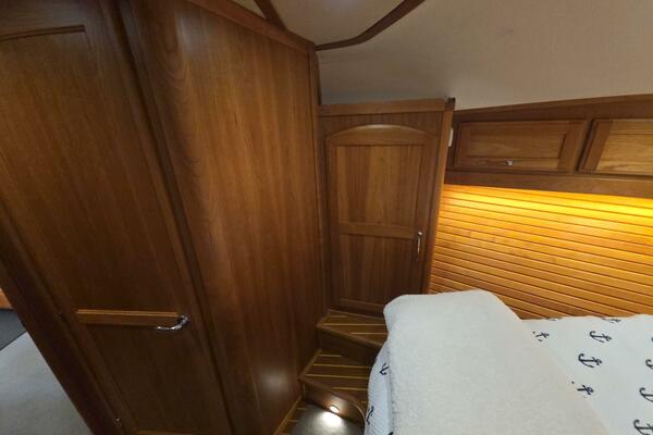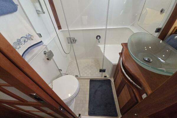 - Master stateroom amidships with queen size island berthGuest cabin forward with queen sized island berth