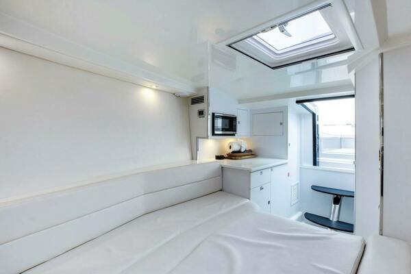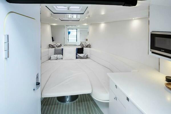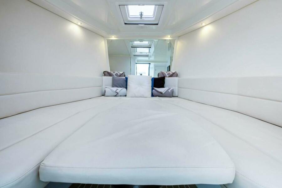 Frank Mulder’s legendary design combines style with performance to create a boat for all your needs, with ample space to entertain, power to reach speeds of up to 36 knots and luxurious features to ensure your ride is comfortable. The queen-size V-cabin with galley station turns this versatile day boat into an overnight cruiser, opening up a world of options to your boating experience.Machinery