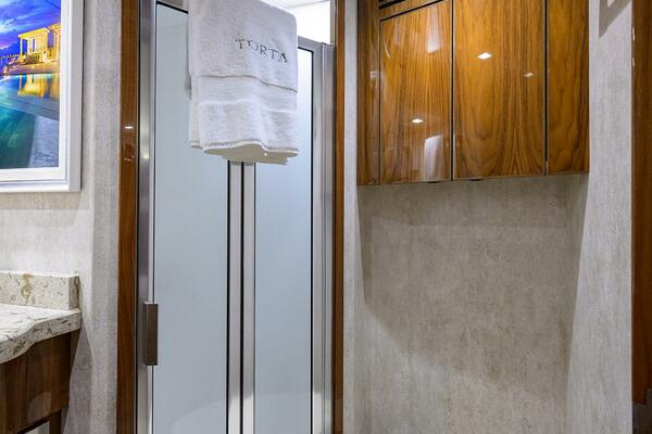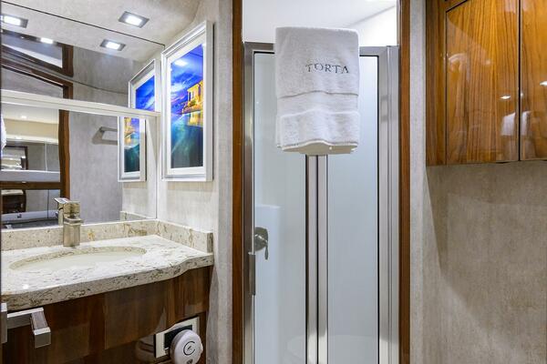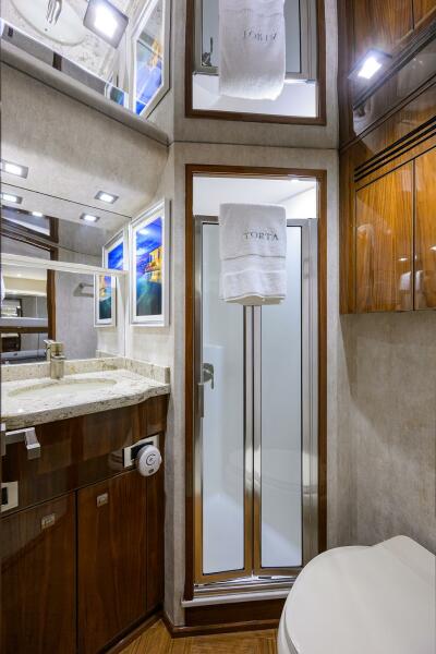 Powered by MTU Series 2000 V16 M96L 2635 MHP engines with 2516 hrs, TORTA delivers the quick acceleration, efficiency, and high-performance speed the 72EB is known for; capable of top-end speeds exceeding 40 knots with a fast, comfortable cruise in the mid-30-knot range.