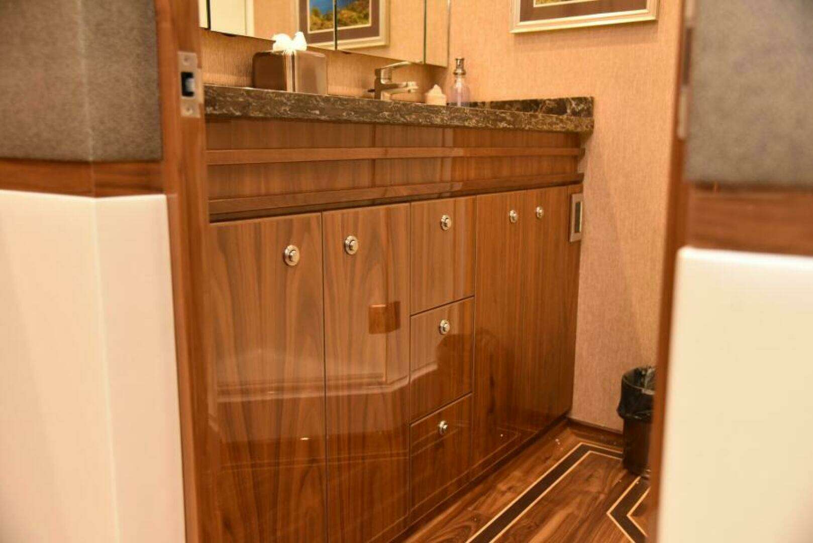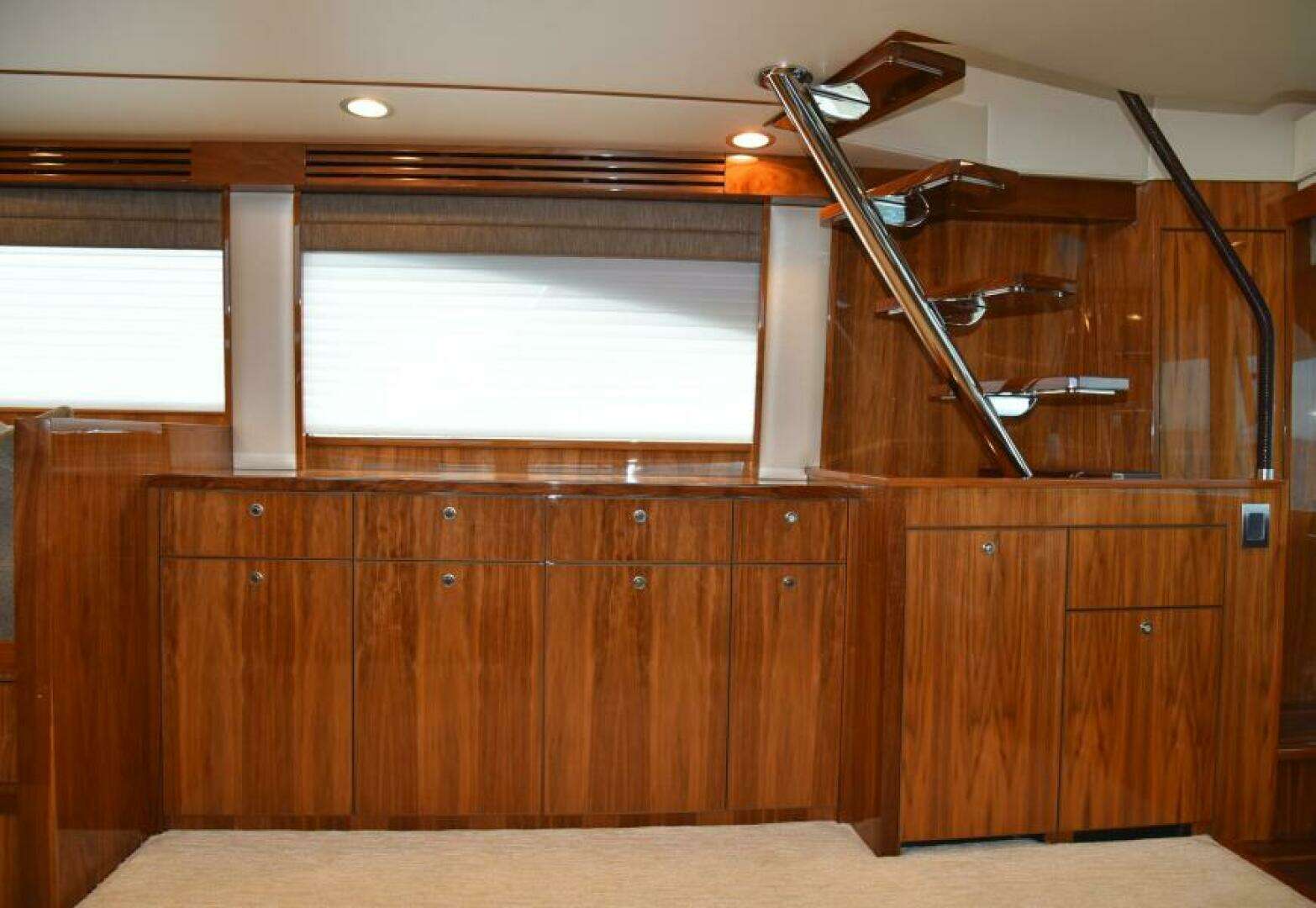 - Cabinet inside pantry next to bank of 4 drawers with shelf and sea railing at top