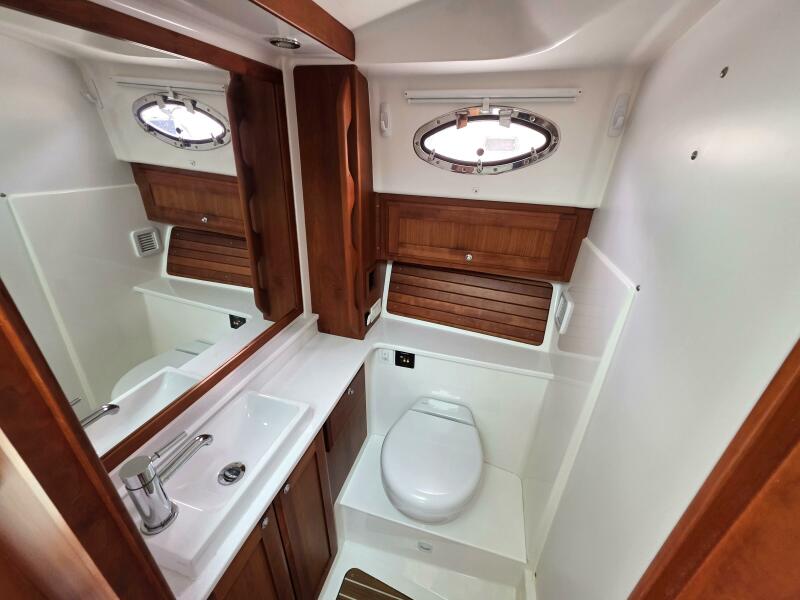 ● Head to port w/ separate shower stall to starboard