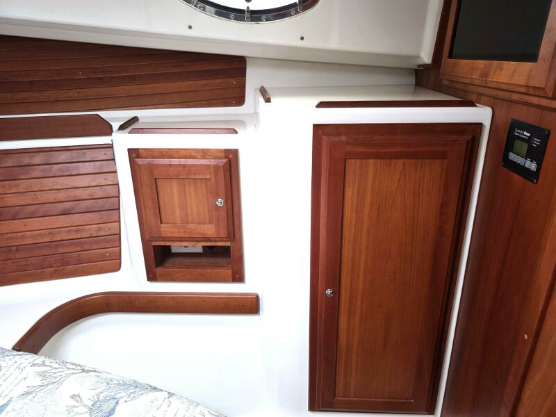 ● Island double berth w/ drawers and storage below