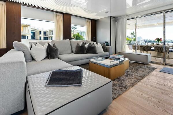 The Ferretti Yachts 850 is a luxury motor yacht known for its dynamic design, refined interiors, and a unique submerged swim platform. It features a large flybridge, ample natural light through large windows, and a sophisticated layout that emphasizes indoor-outdoor living.