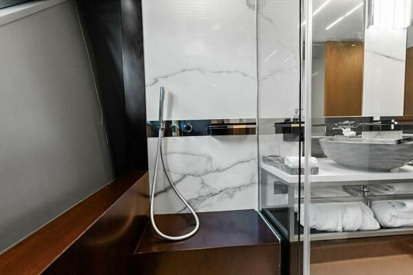 - Shower with hot/cold fresh water (inside steps to aft platform)
